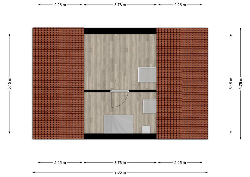 Indeling: Begane grond: Entree, hal met toilet, woonkamer en halfopen keuken Eerste verdieping: Overloop, twee slaapkamers en badkamer met ligbad, toilet en wastafel Tweede verdieping: Overloop en één slaapkamer