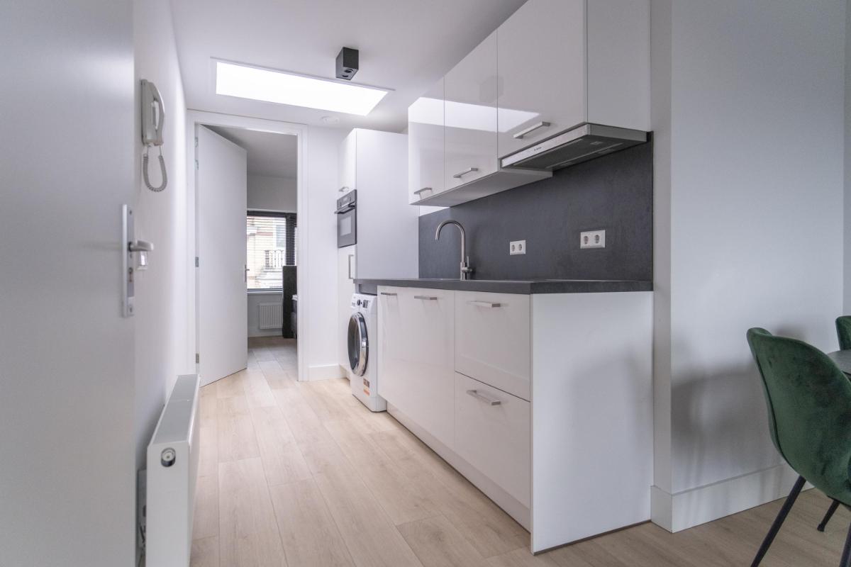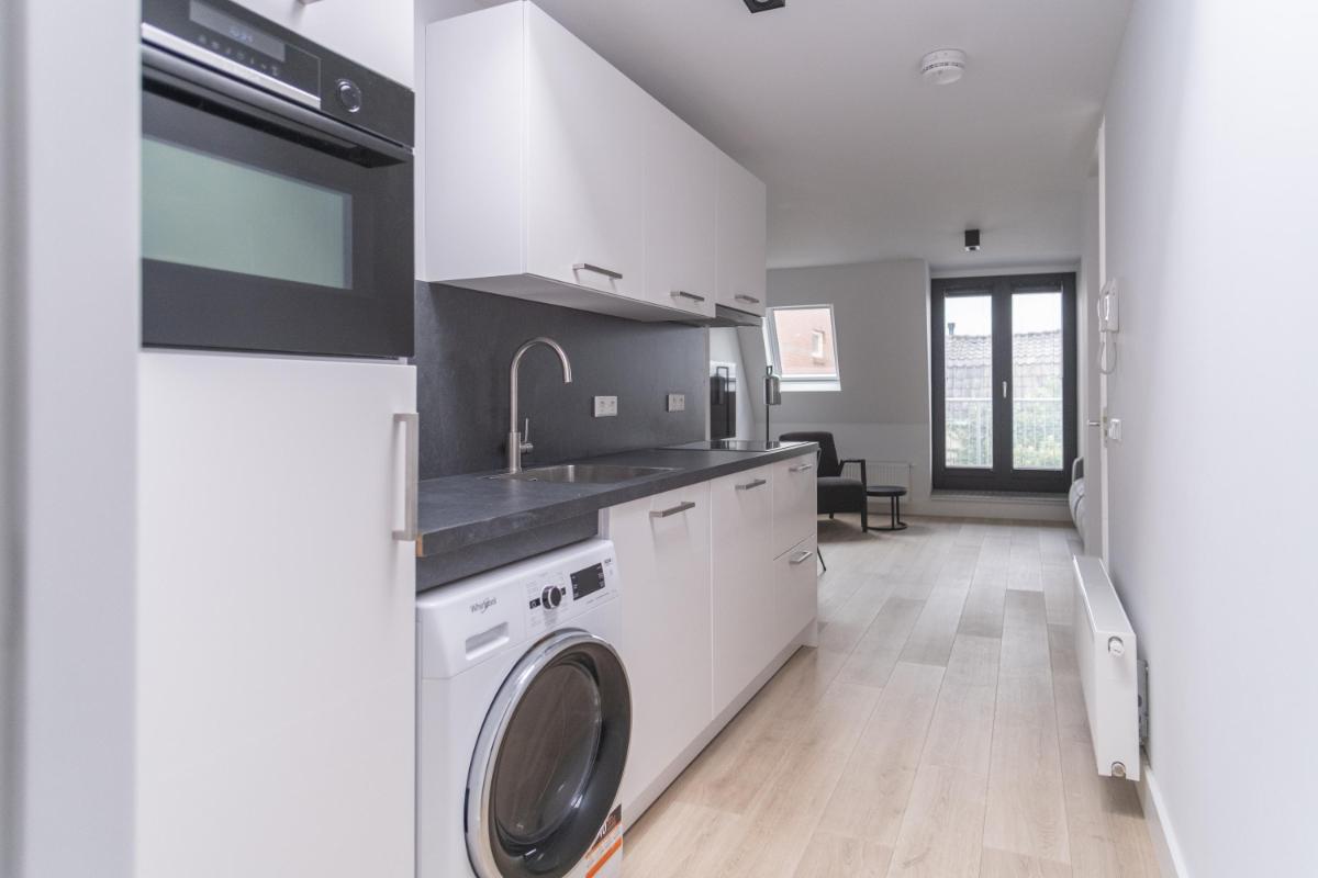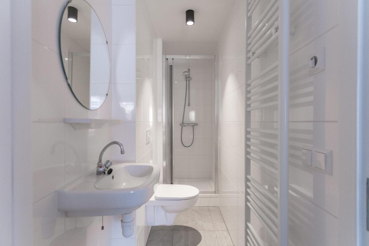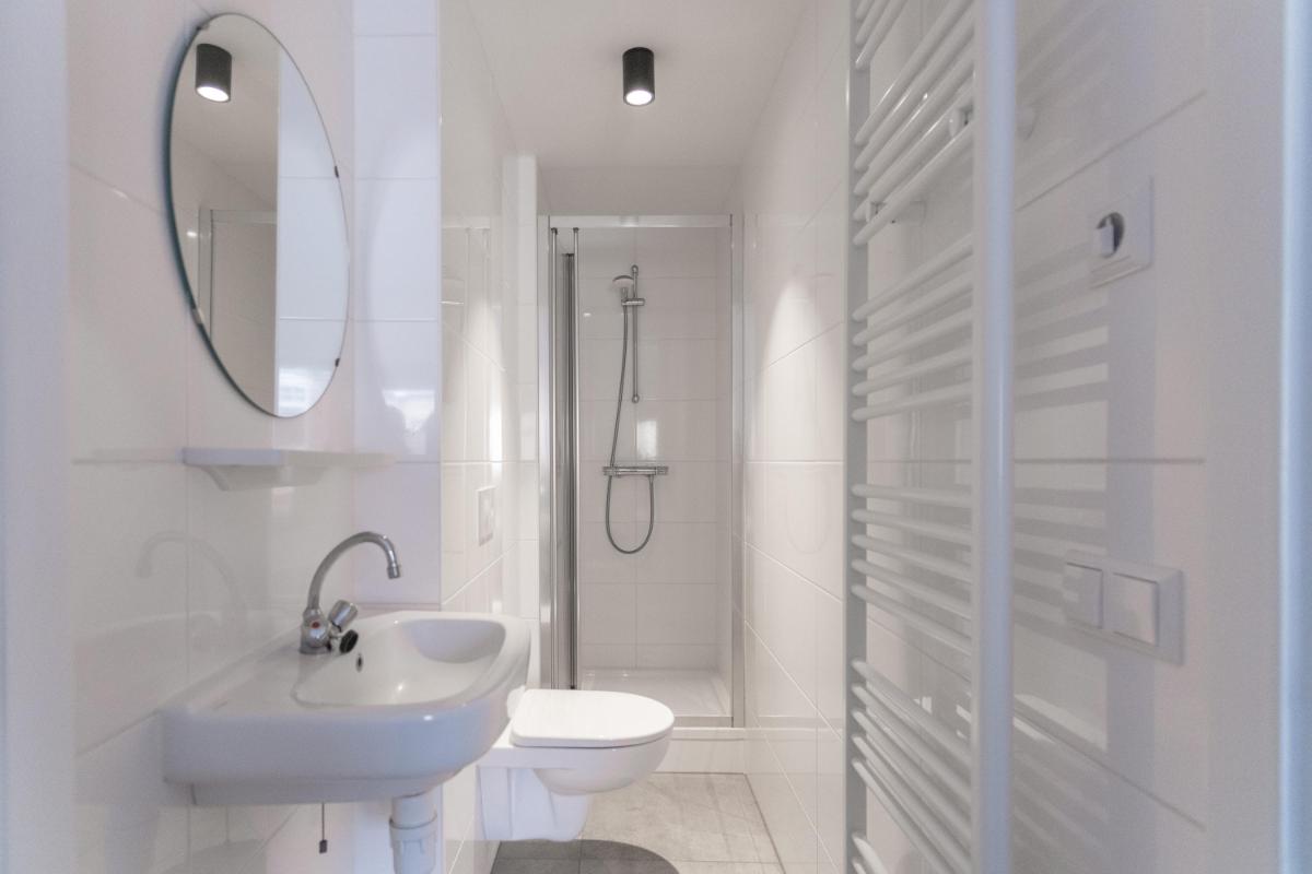 De badkamer is compact en functioneel ingericht met een douche, wastafel en toilet. De slaapkamer is aan de voorzijde van het appartement gesitueerd.