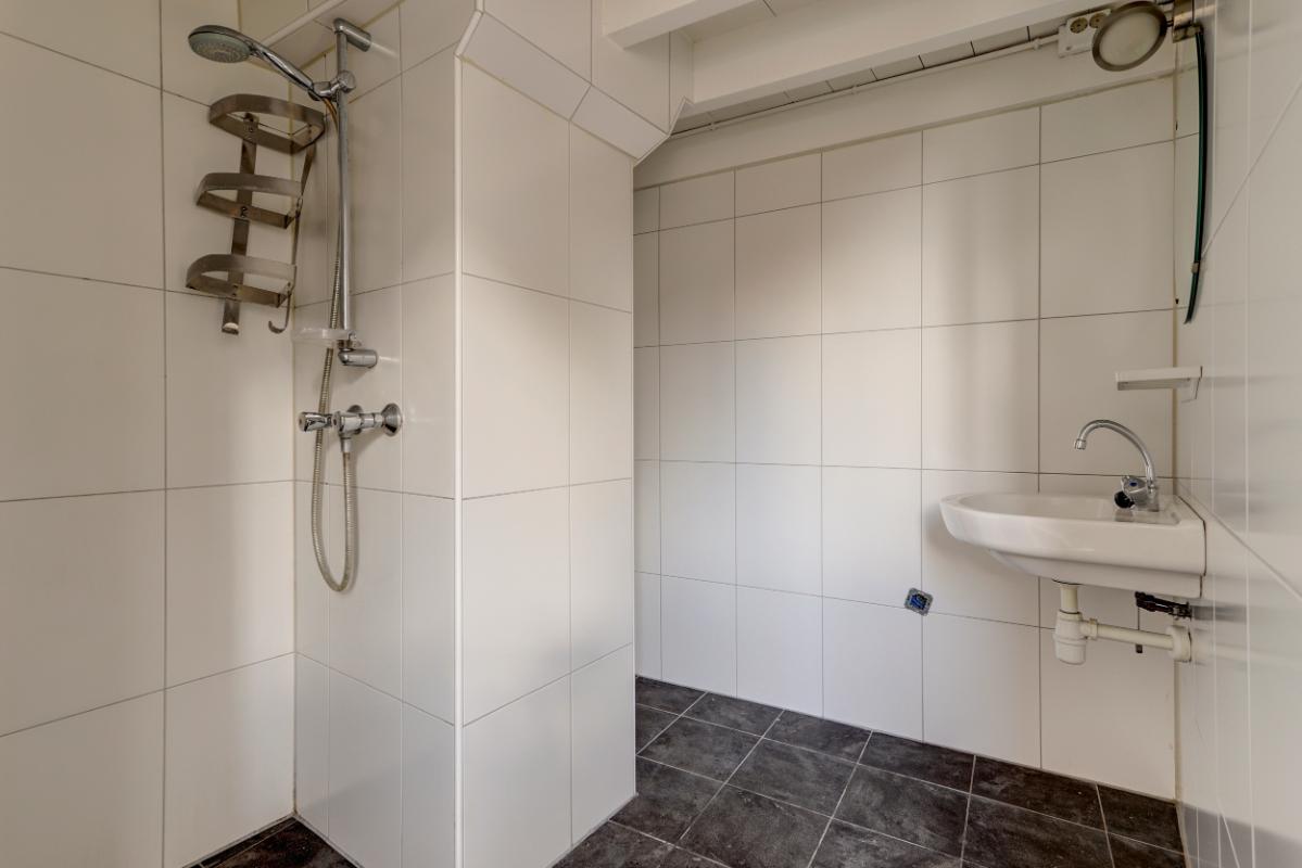 Aansluitend bevindt zich de badkamer, welke is uitgerust met een inloopdouche, toilet, wastafel en een aansluiting voor de wasmachine.