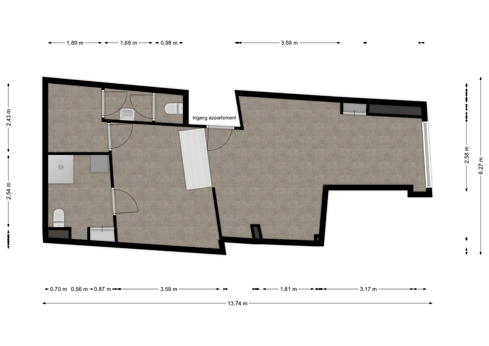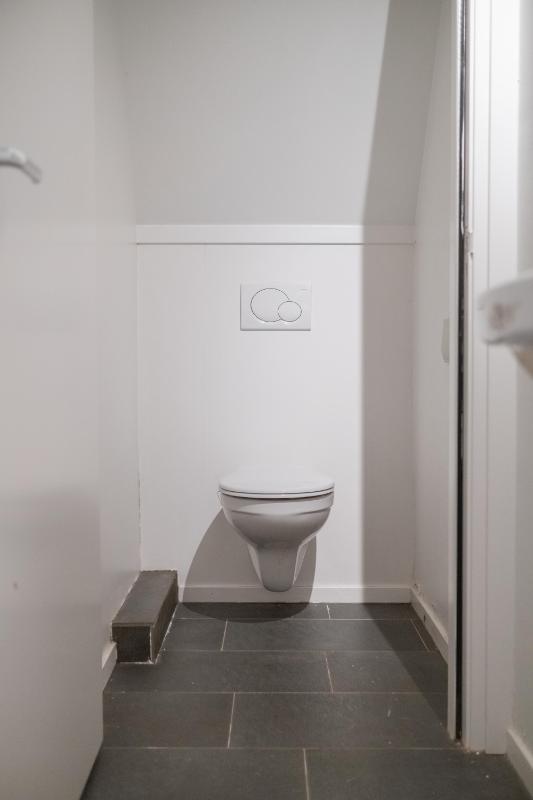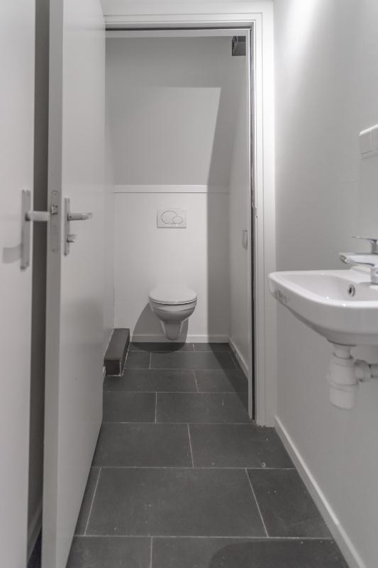 De slaapkamer is bereikbaar via een trapje naar beneden. Vanuit de slaapkamer komt u in de badkamer, welke is voorzien van een douche, toilet, wastafel en een aansluiting voor de wasmachine. Daarnaast beschikt het appartement over een walk-in closet. Via de berging is het separate toilet bereikbaar.