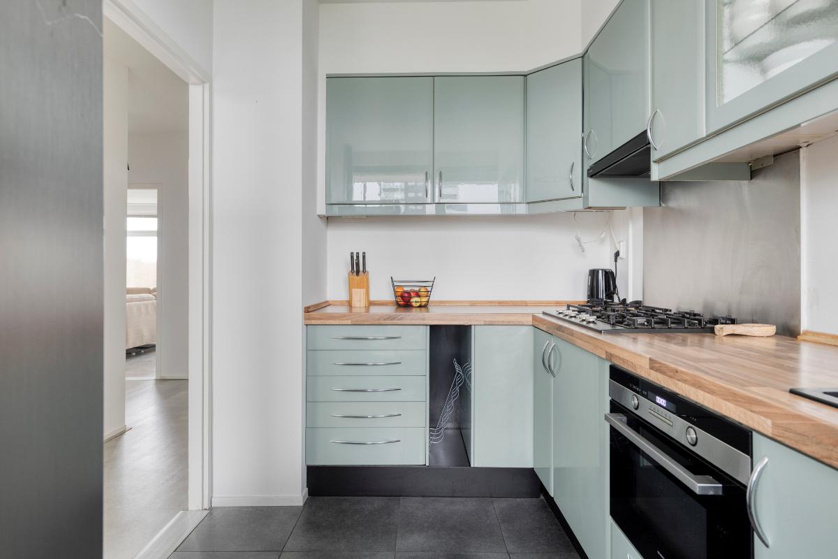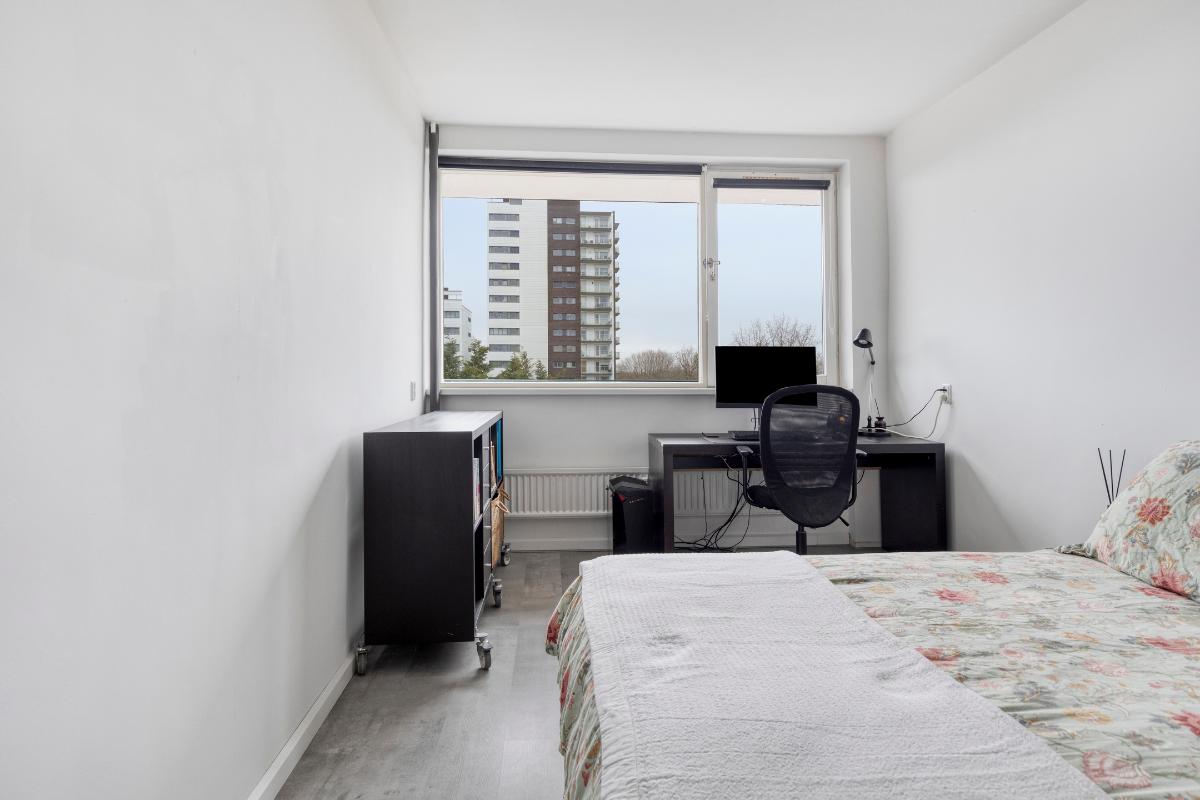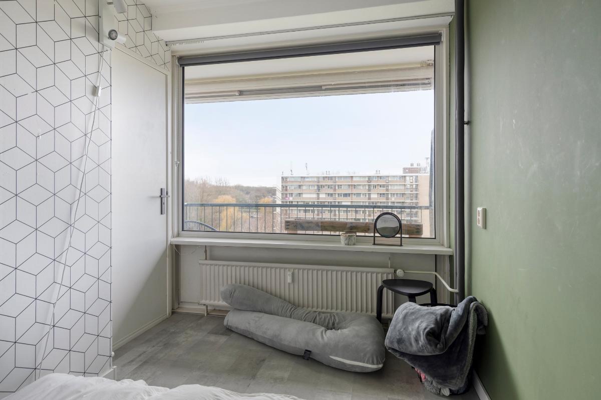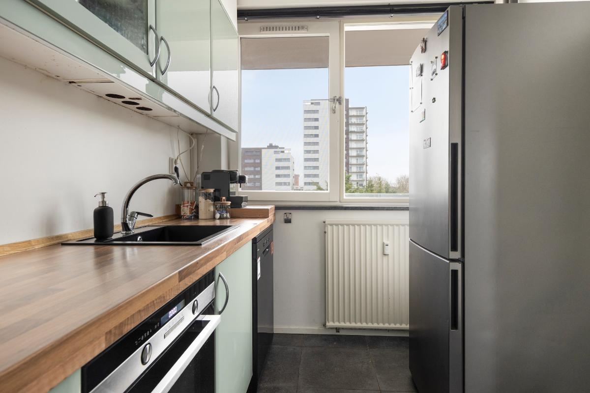 Op de zevende verdieping van dit goed onderhouden appartementencomplex ligt dit ruime en lichte vierkamerappartement. De instapklare woning beschikt over een praktische hal met drie vaste kasten en een moderne meterkast. De royale, woningbrede woonkamer is door de grote raampartijen heerlijk licht en biedt toegang tot het zonnige balkon met weids uitzicht. De dichte keuken is recent gemoderniseerd en voorzien van een 5-pits gaskookplaat, nieuwe afzuigkap, combi-oven en vaatwasser. Het appartement heeft verder drie slaapkamers, waarvan twee zijn uitgerust met praktische kastenwanden.