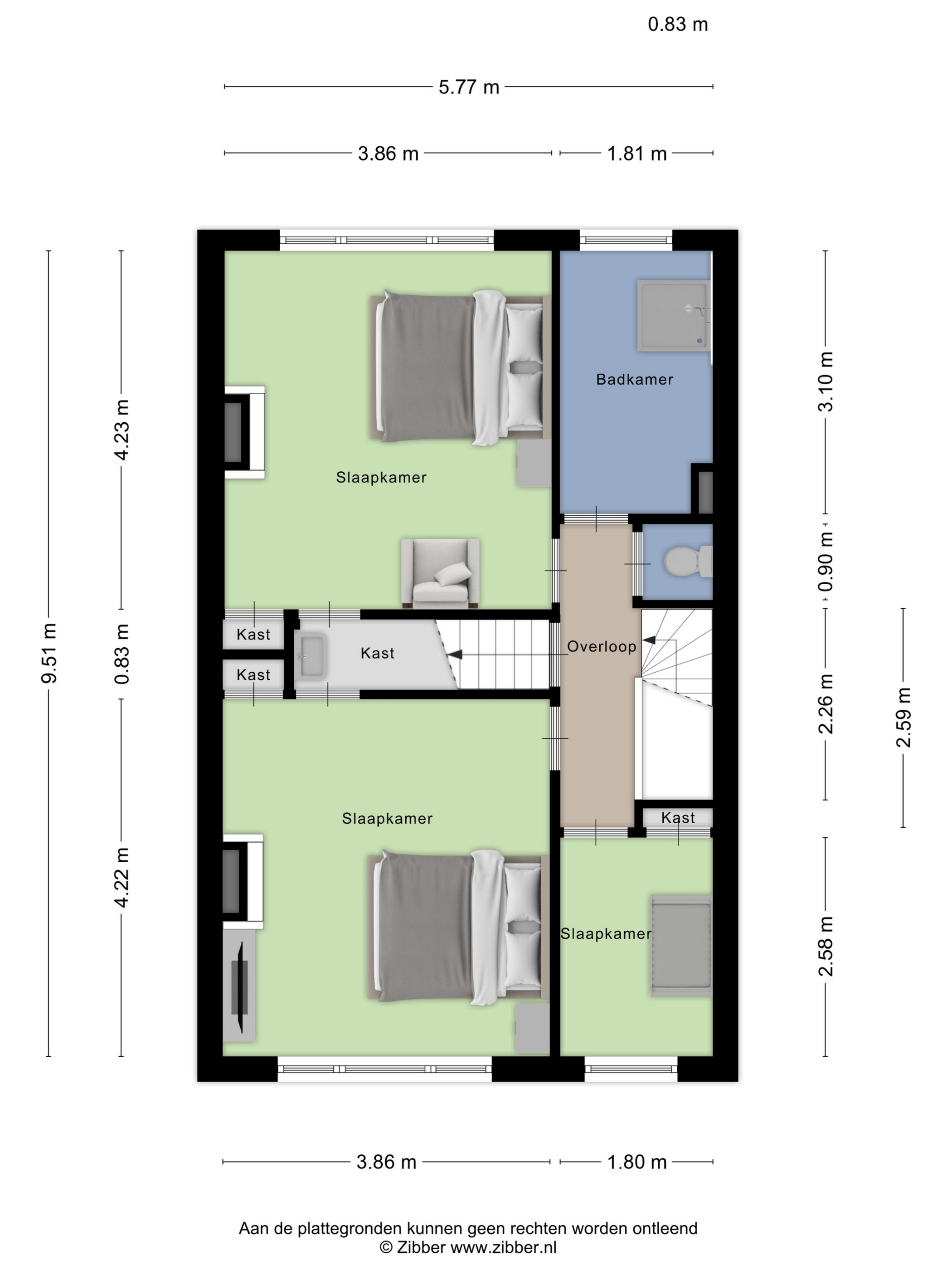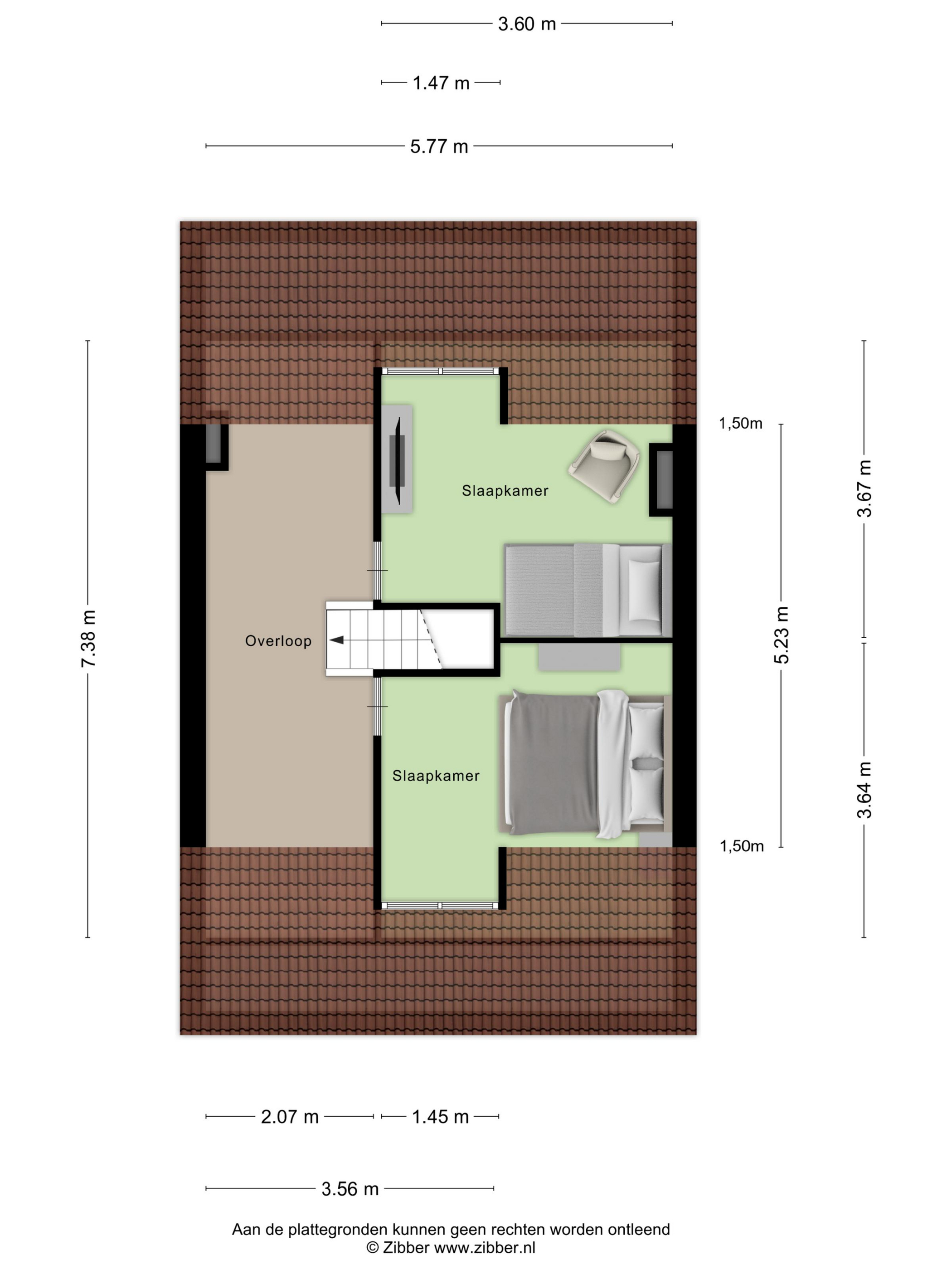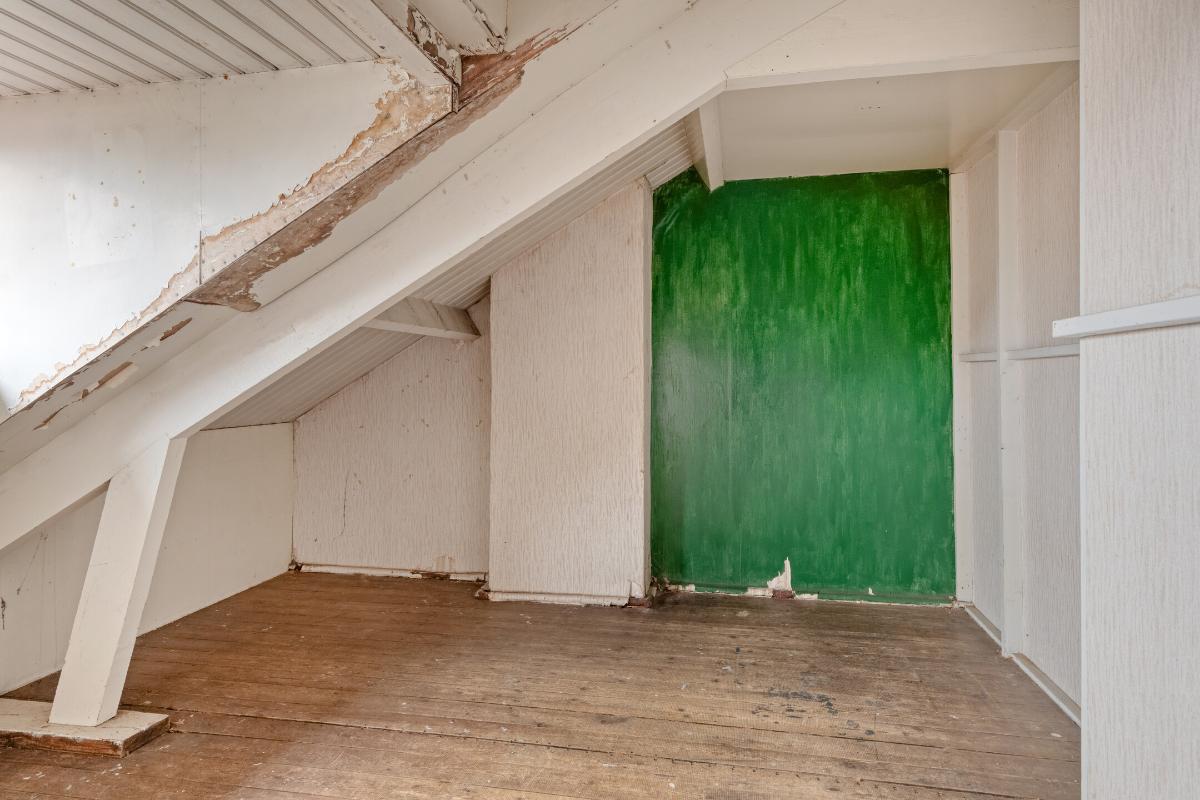 Slapen en douchen of baden Op de eerste verdieping bevindt zich een ruime overloop met een tweede toilet. De riante voorslaapkamer beschikt over een schouw en vaste kast. Aangrenzend een doorloopkast met wastafel. De tweede zeer ruime slaapkamer is eveneens voorzien van een vaste kast en aangrenzend een doorloop kast met wastafel. De derde kleinere slaapkamer is gelegen aan de voorzijde van de woning. De badkamer is eenvoudig en voorzien van een douche. Op de tweede verdieping nog eens twee slaapkamers beide voorzien van een dakkapel.