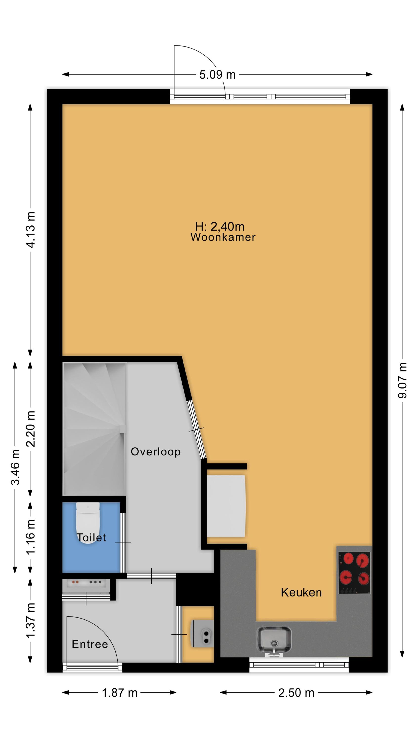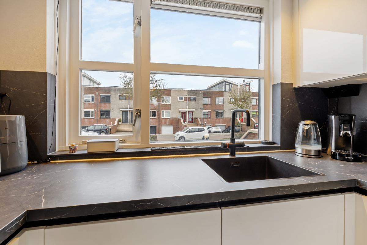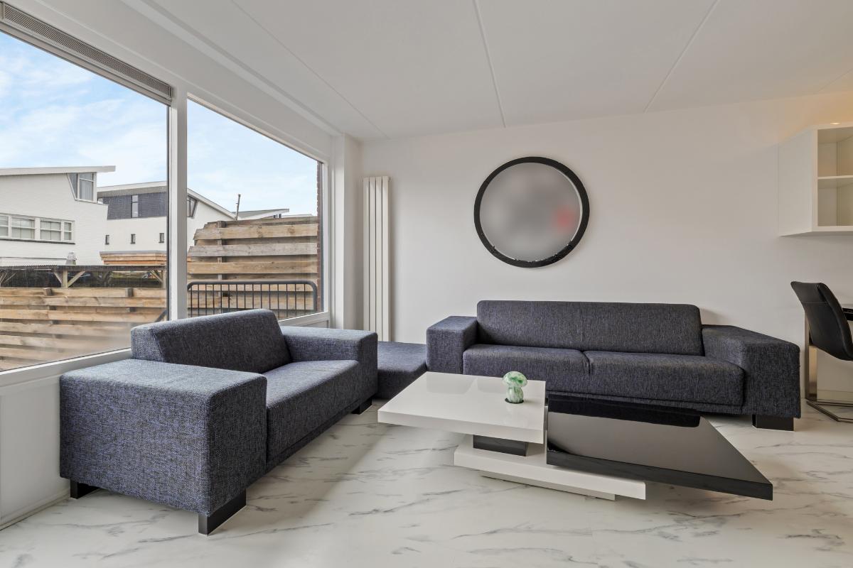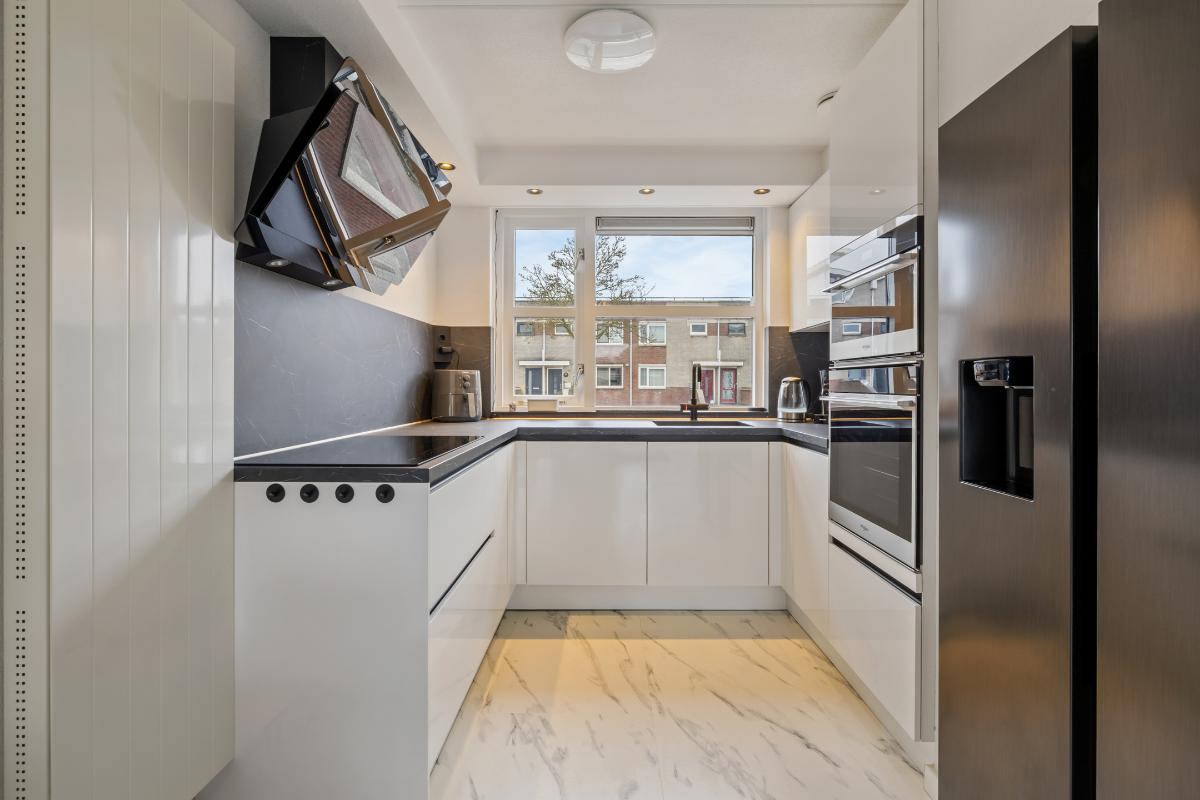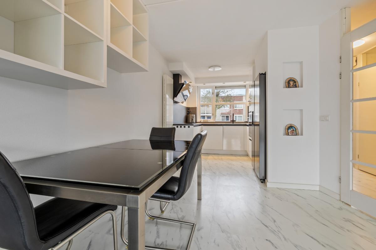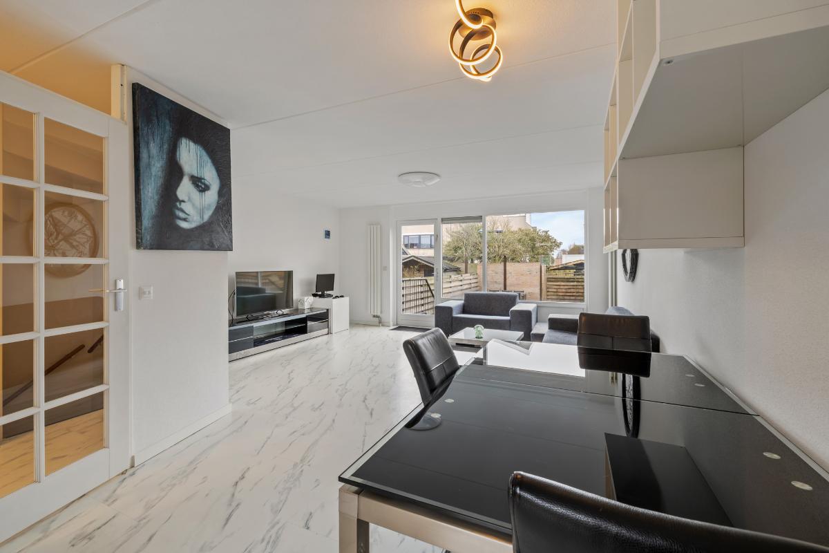 Woonverdieping: Entree/hal met meterkast, vaste kast met cv-ketel (bouwjaar 2021) en een toiletruimte. De tuingerichte woonkamer is voorzien van een PVC-tegelvloer en biedt een prettige lichtinval. Aan de voorzijde bevindt zich de nette keuken, uitgevoerd met diverse inbouwapparatuur, waaronder een vaatwasser, 4-pits inductiekookplaat, afzuigkap, Amerikaanse koelkast en een combi-ovenmagnetron. Daarnaast is een 3-fase krachtstroomgroep aanwezig, ideaal voor eventueel gebruik in de garage of werkplaats.