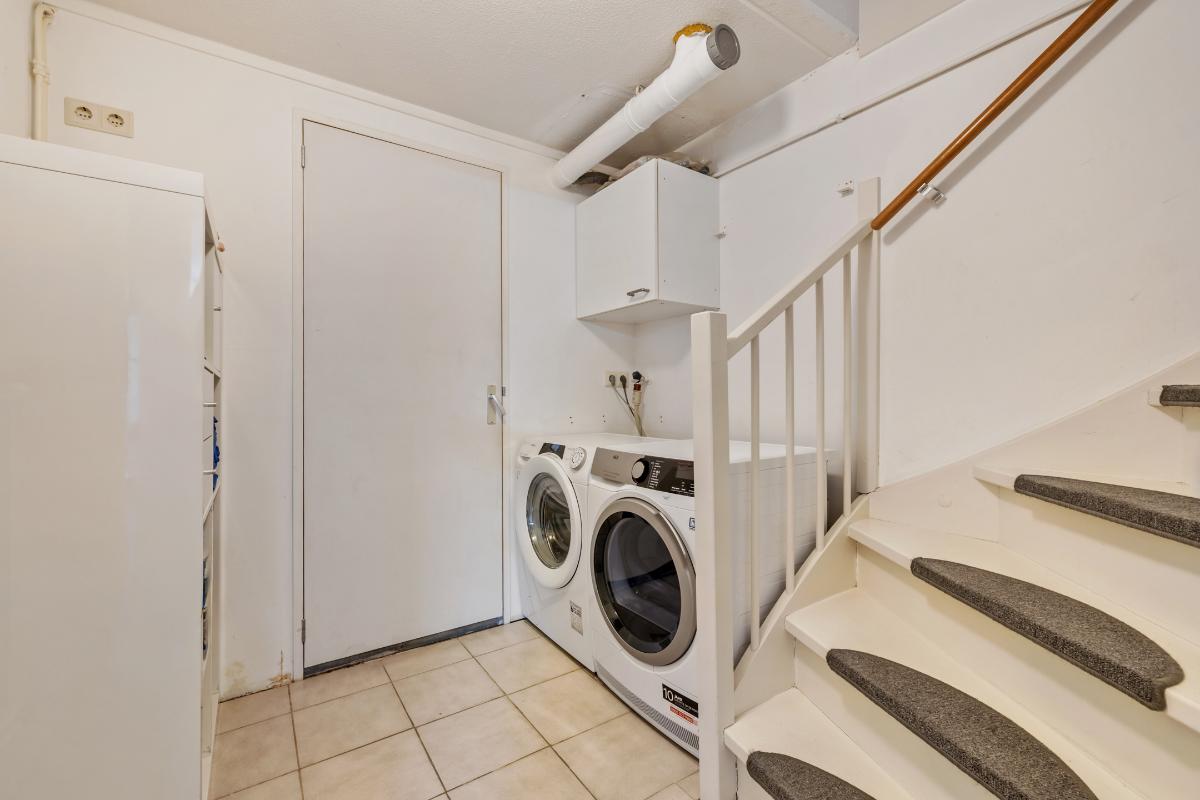 Souterrain: Hal met ruimte voor wasmachine, wasdroger en volautomatische waterontharder aanwezig. Heerlijk zacht kalkvrij water bij het douchen en in bad. Geen kalkaanslag meer in douche, bad en de warmtewisselaar van de cv-installatie. Zeer grote garage van ruim 35 m², welke ook vanuit de erboven gelegen hal bereikbaar is. Garage is verwarmd en voorzien van elektrische deuren. De vloer van de garage is geheel betegeld met grijze plavuizen. Extra opbergruimte onder de trap en in technische ruimte.