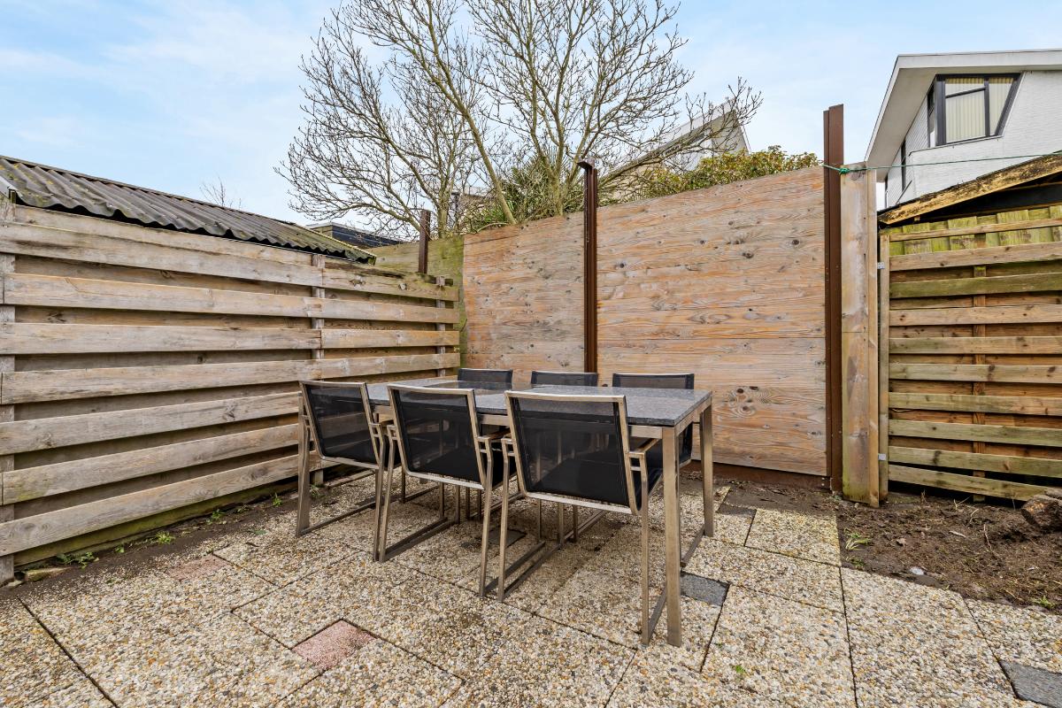 Tuin: Vanuit de woonkamer kom je eerst op een houten terras op woonkamerniveau. Via vier treden bereik je de lagergelegen tuin, die volledig is voorzien van bestrating. De tuin is circa 12 meter diep en 5,5 meter breed en ligt volledig op het zuidwesten, waardoor je de hele dag van de zon kunt genieten. Het terras is bovendien uitgerust met een elektrische zonwering, ideaal om op warme dagen comfortabel in de schaduw te zitten. Een perfecte plek om te ontspannen, te tuinieren of gezellig buiten te zitten.