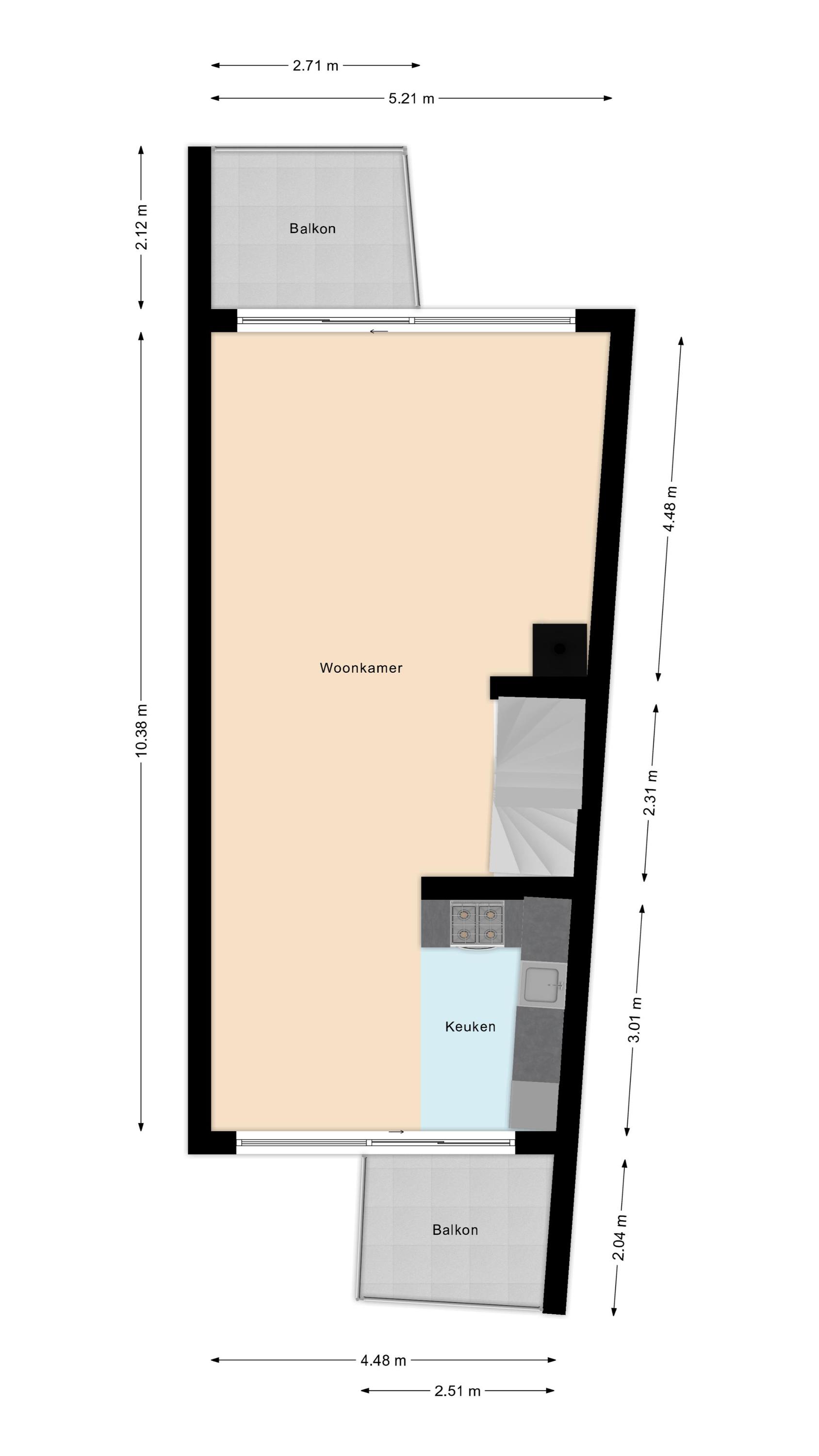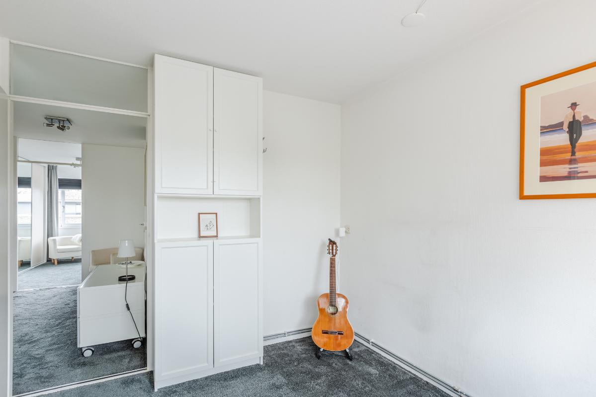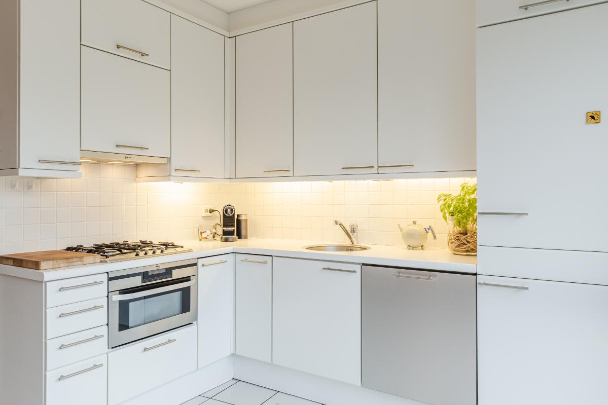 Eerste verdieping: De ruime, lichte woonkamer met woon- en eetgedeelte heeft aan zowel de voor- als achterzijde grote raampartijen, een schuifpui en een balkon. Het balkon aan de voorzijde ligt op het oosten, perfect voor een kop koffie in de ochtendzon. Het balkon aan de achterzijde is ideaal om ’s avonds van de zon te genieten. De keuken bevindt zich aan de voorzijde, is geplaatst in hoekopstelling en uitgerust met diverse inbouwapparatuur. Aan beide zijden is elektrische zonwering aanwezig.