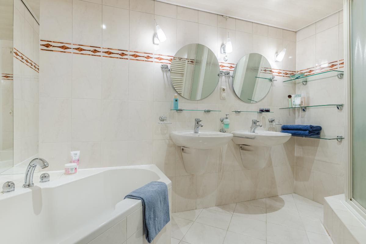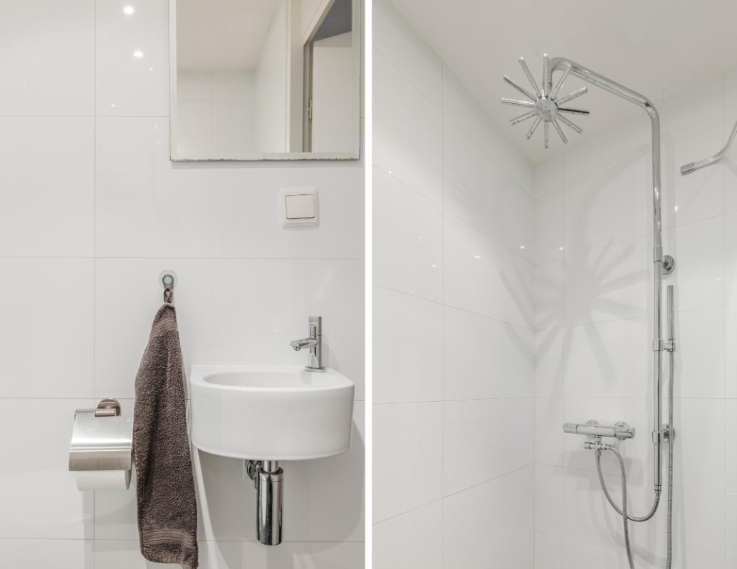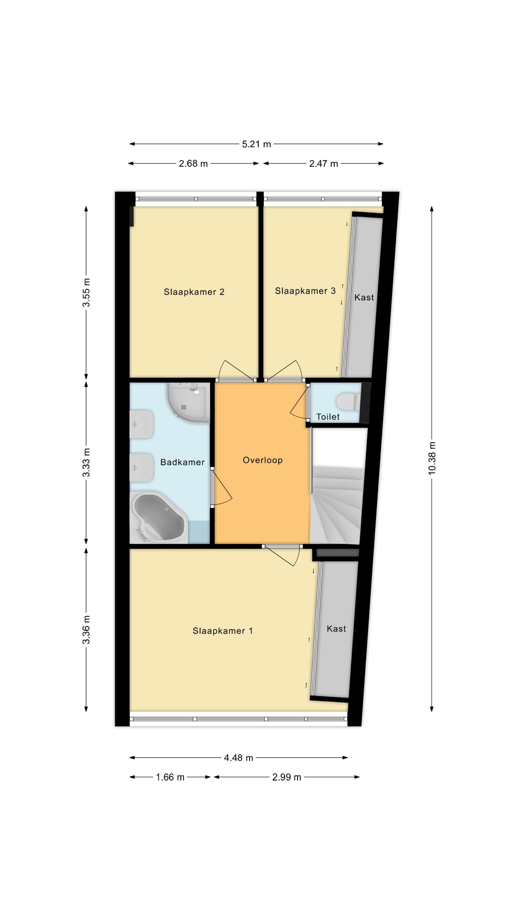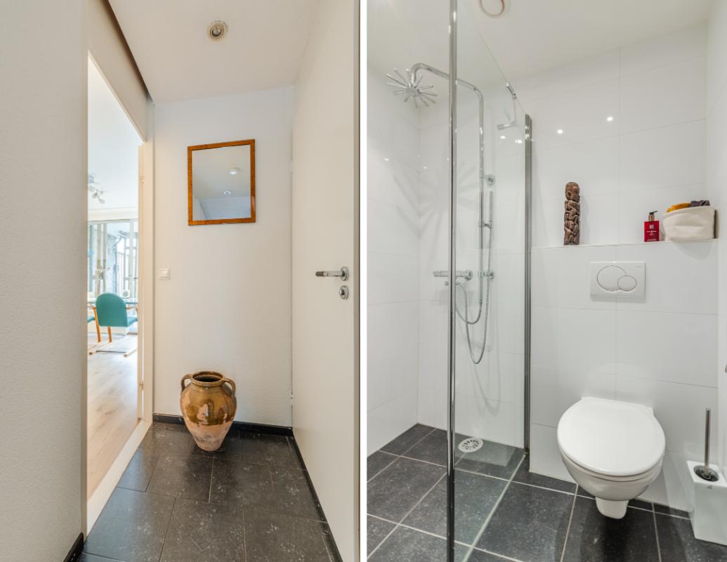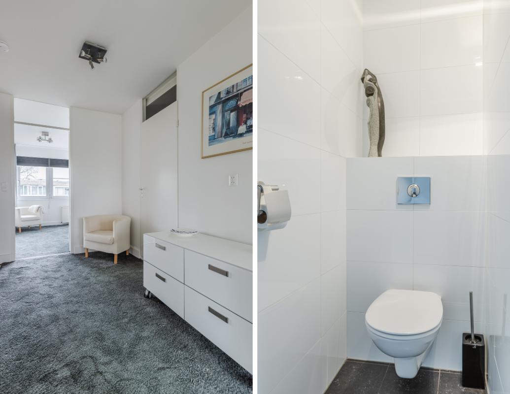 Tweede verdieping: Op deze verdieping liggen 3 slaapkamers, waarvan 2 zijn voorzien van een royale schuifwandkast. De grote slaapkamer aan de voorzijde beslaat de volledige breedte van de woning. De 2e badkamer is uitgerust met een ligbad, dubbele wastafel en douchecabine. Daarnaast is er een separate toiletruimte aanwezig.