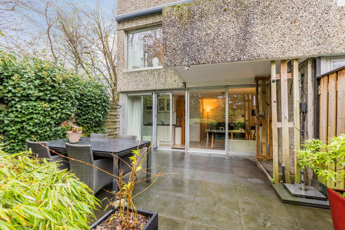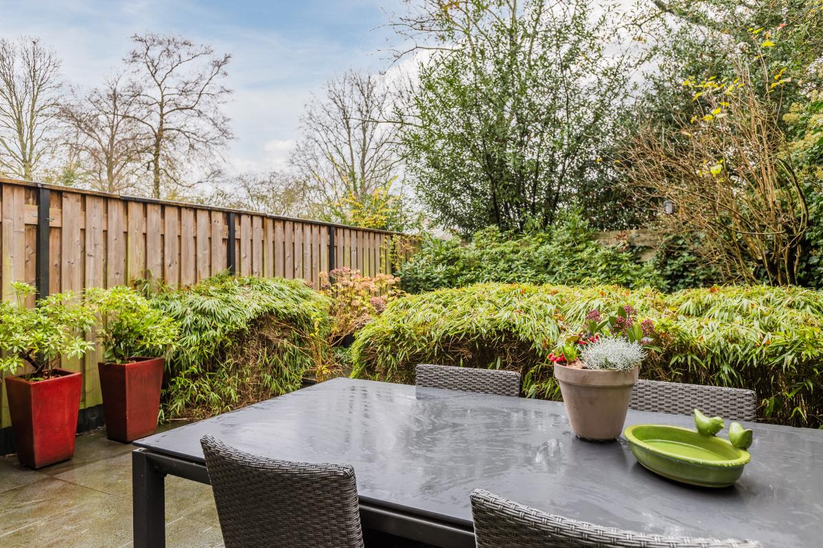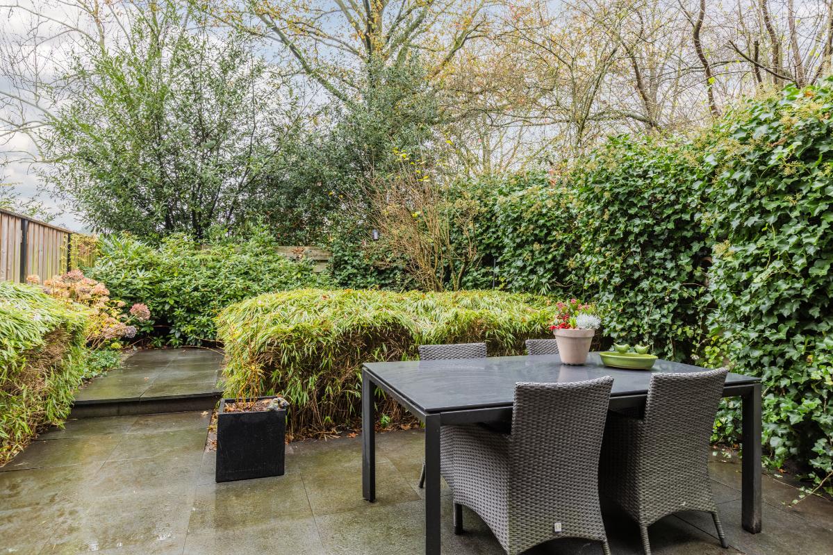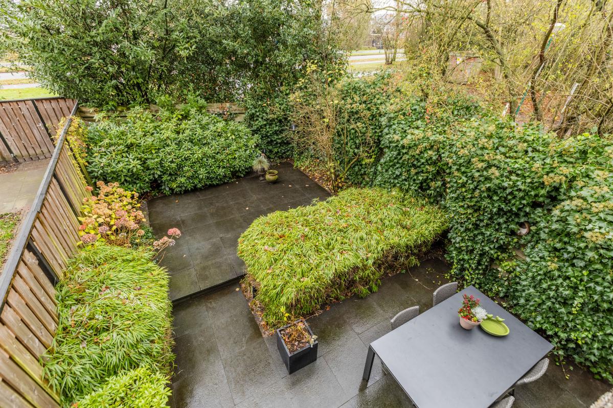Achtertuin: De onderhoudsvriendelijke tuin is ingericht met een mooi terras en veel groen. Dankzij de bomen en struiken biedt de tuin volop privacy en geeft het je echt een parkgevoel. Een heerlijke plek om tot rust te komen en te genieten van de middag- en avondzon.