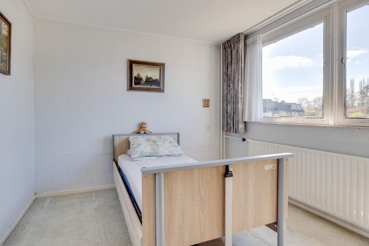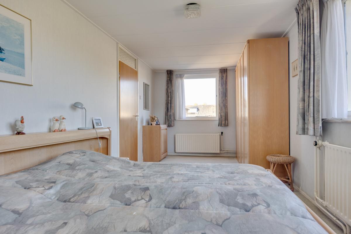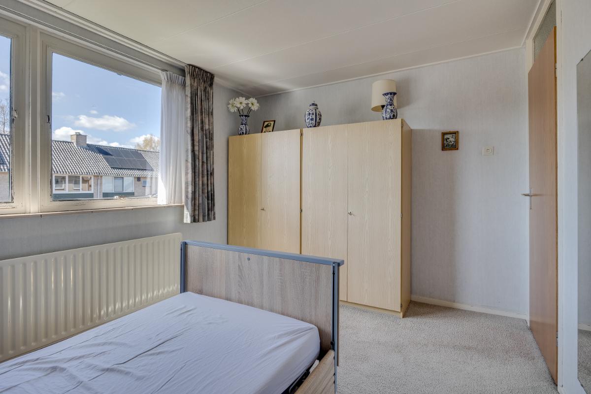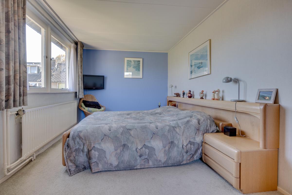 Terug in de woning betreed je via de trap de eerste verdieping waar zich drie slaapkamers en een badkamer bevinden. De achterste slaapkamer strekt over de hele breedte van het huis en is daardoor van groot formaat. Aan de voorzijde bevinden zich twee kleinere slaapkamers. De badkamer is in 2022 vernieuwd en heeft door het weghalen van twee inbouwkasten een net formaat. Deze is voorzien van inloopdouche, toilet en wastafel.