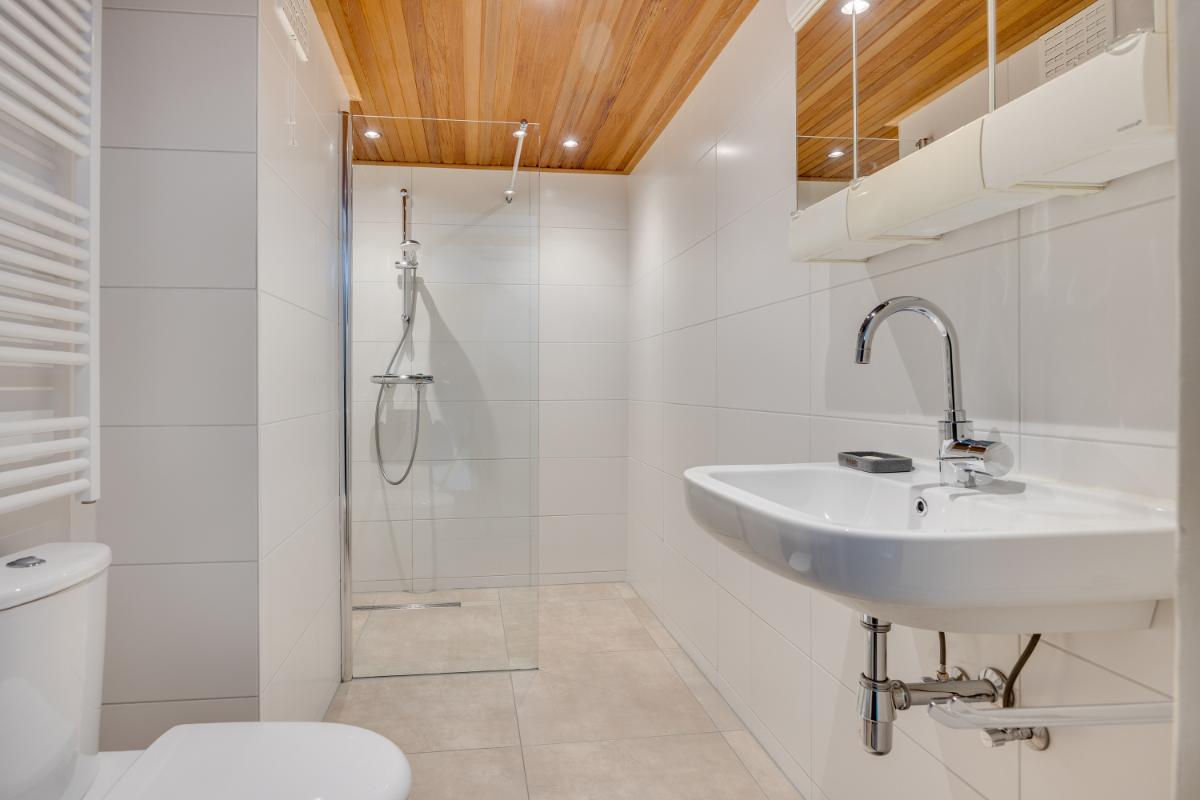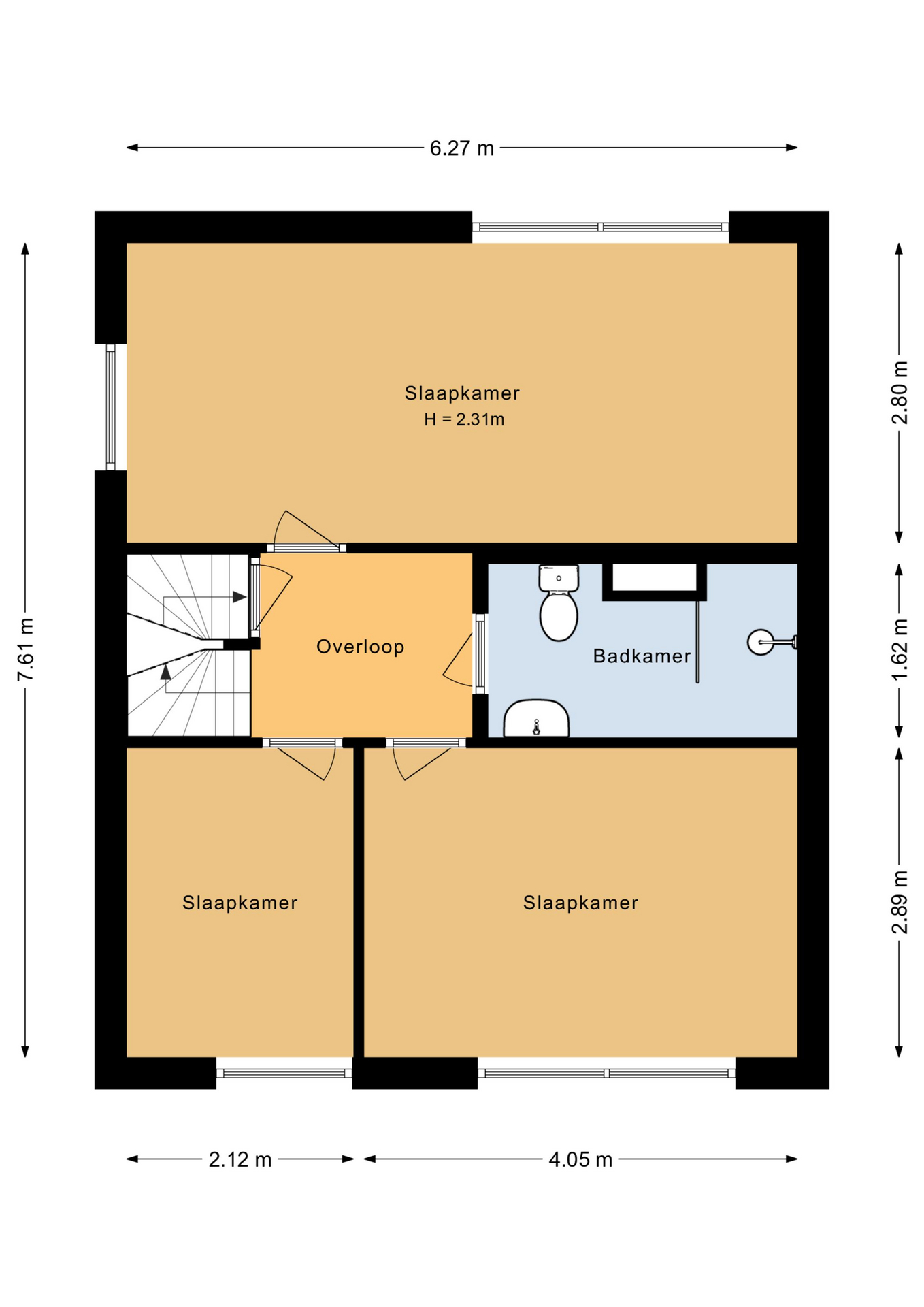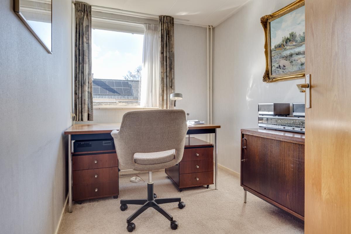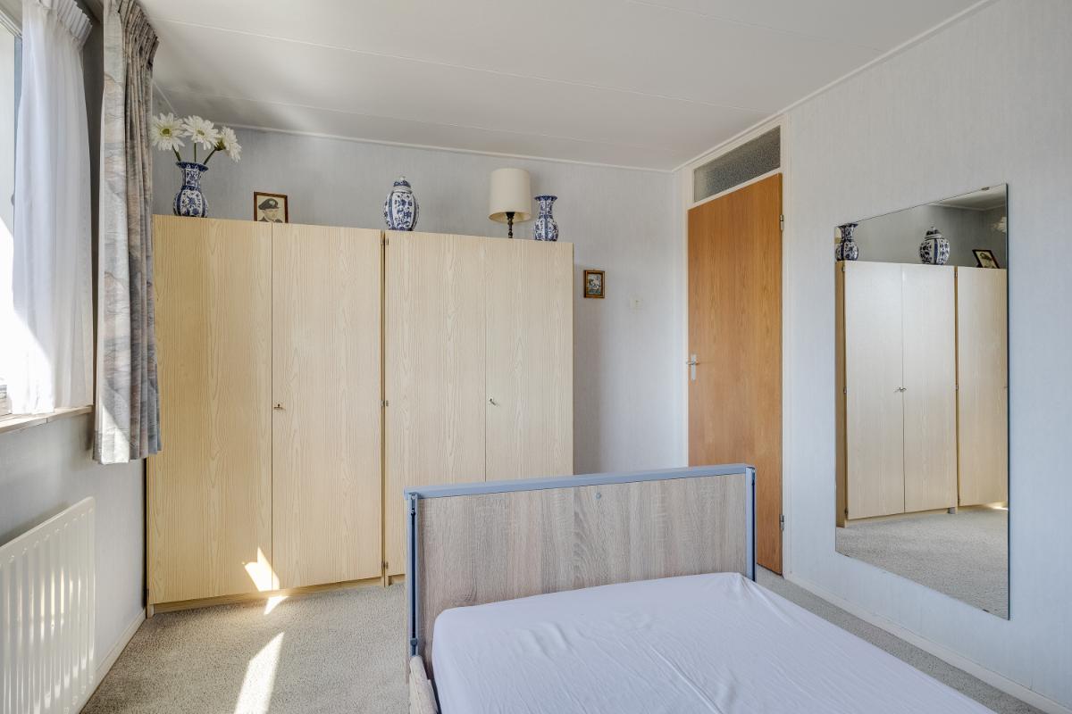 Terug in de woning betreed je via de trap de eerste verdieping waar zich drie slaapkamers en een badkamer bevinden. De achterste slaapkamer strekt over de hele breedte van het huis en is daardoor van groot formaat. Aan de voorzijde bevinden zich twee kleinere slaapkamers. De badkamer is in 2022 vernieuwd en heeft door het weghalen van twee inbouwkasten een net formaat. Deze is voorzien van inloopdouche, toilet en wastafel.