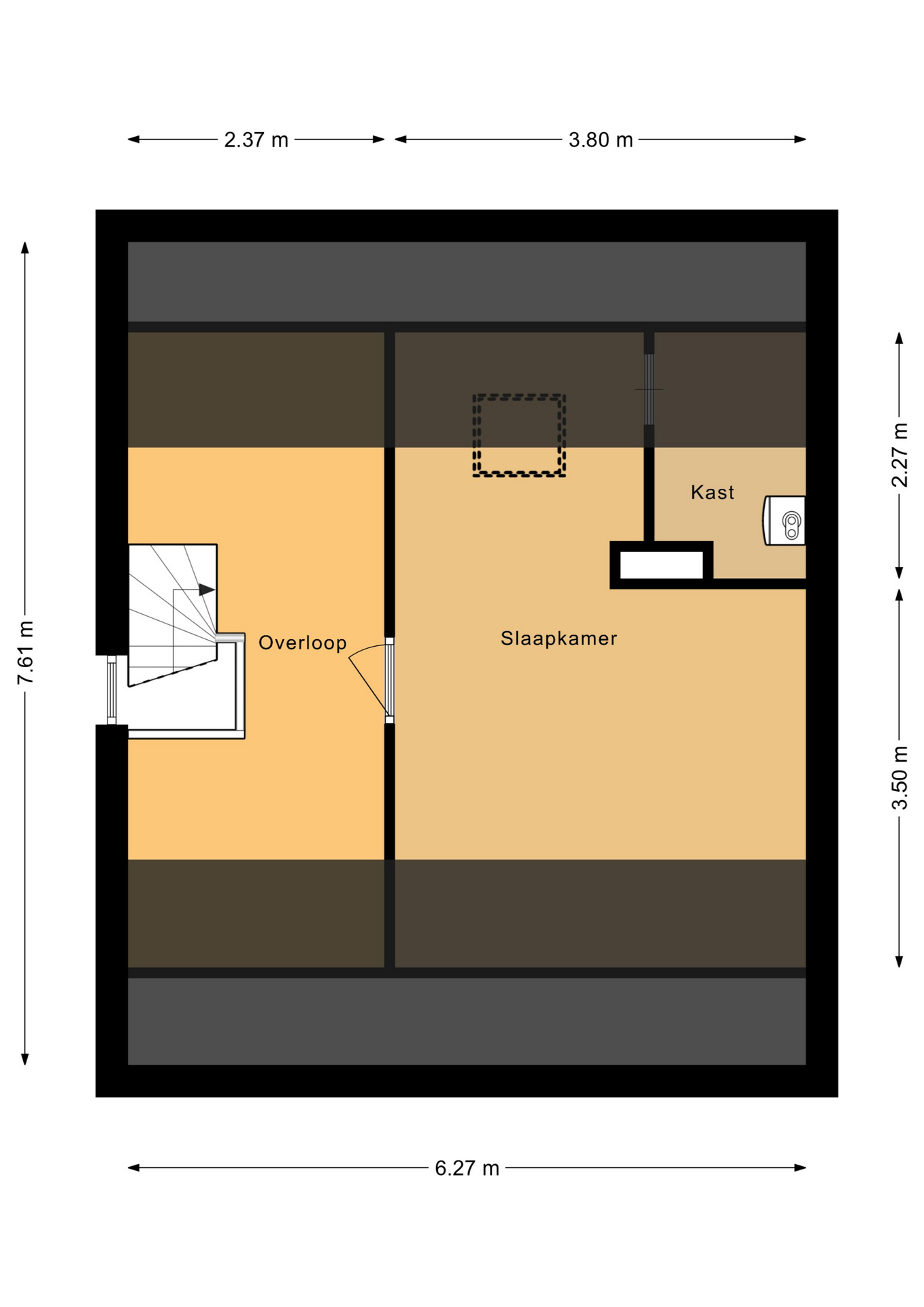 Op de tweede verdieping bevindt zich een voorzolder en een grote slaapkamer. Door het plaatsen van een dakraam aan de voorzijde zal op deze verdieping gemakkelijk twee slaapkamers gerealiseerd kunnen worden.