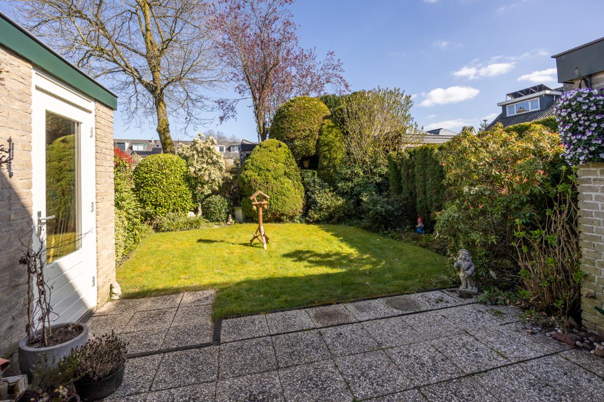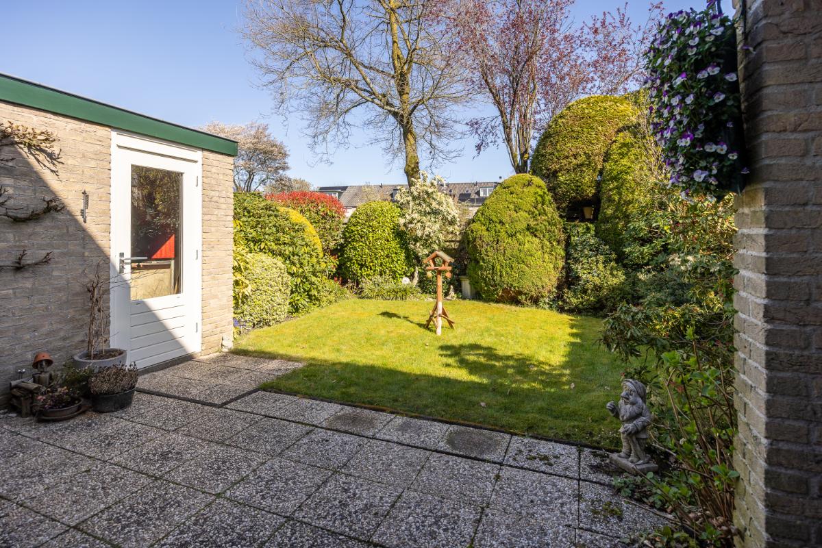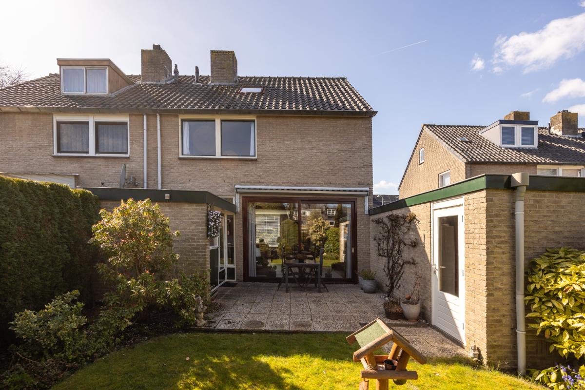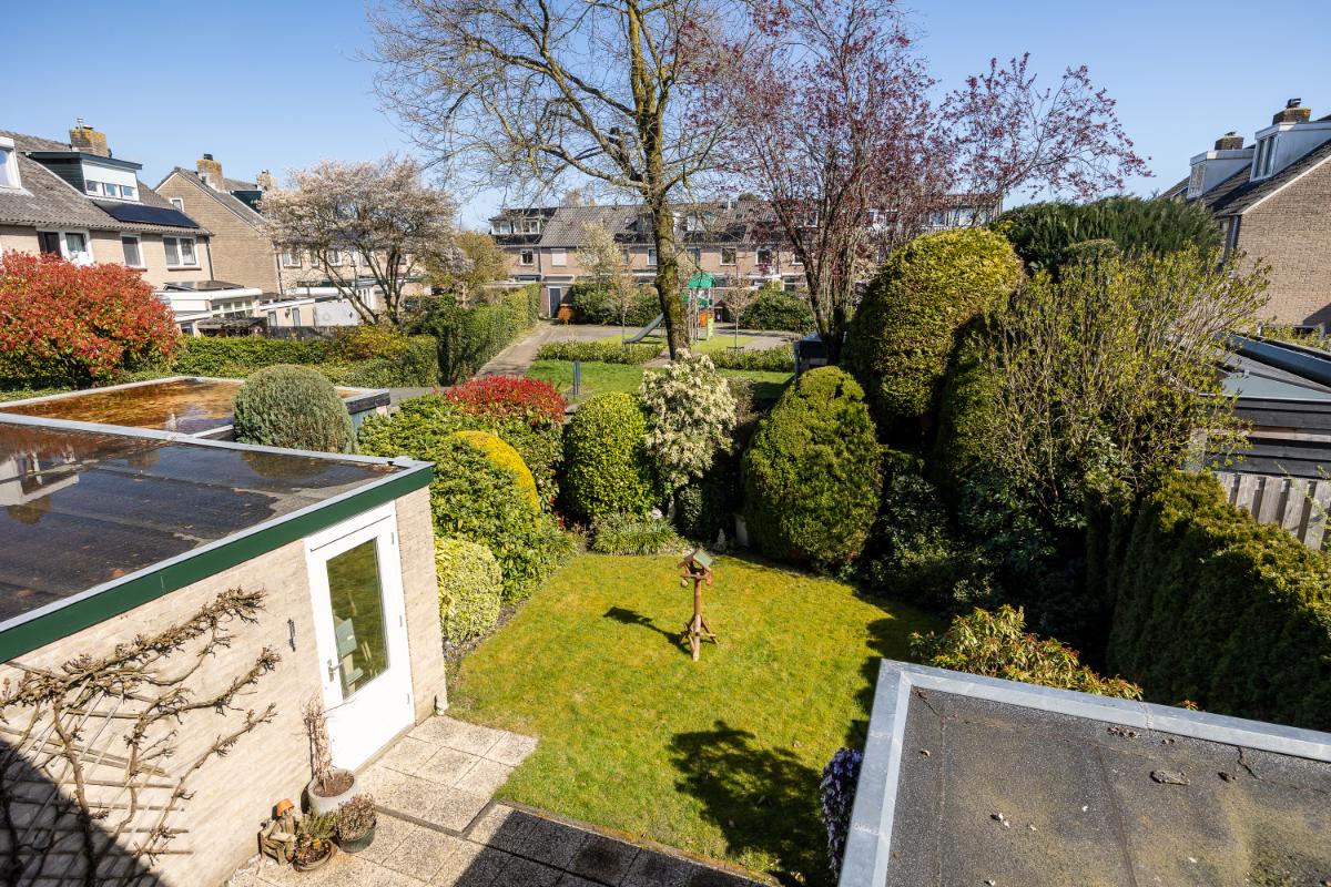 De achtertuin is een plaatje, gelegen op het zuid oosten met vrijwel de gehele dag zon door de ideale ligging. De achtertuin is groen aangelegd en heeft mogelijkheid tot het creëren van een achterom naar het achtergelegen pleintje. Door de ligging is er altijd een plekje waar zowel zon als schaduw is. Naast de woning ligt de lange garage voorzien van garagedeur. De garage is bijna 8 meter lang. Hier bevindt zich enorm veel opbergruimte, is er mogelijkheid tot het parkeren van een auto of kan de echte klusser of hobbyist zijn of haar hart uitleven.