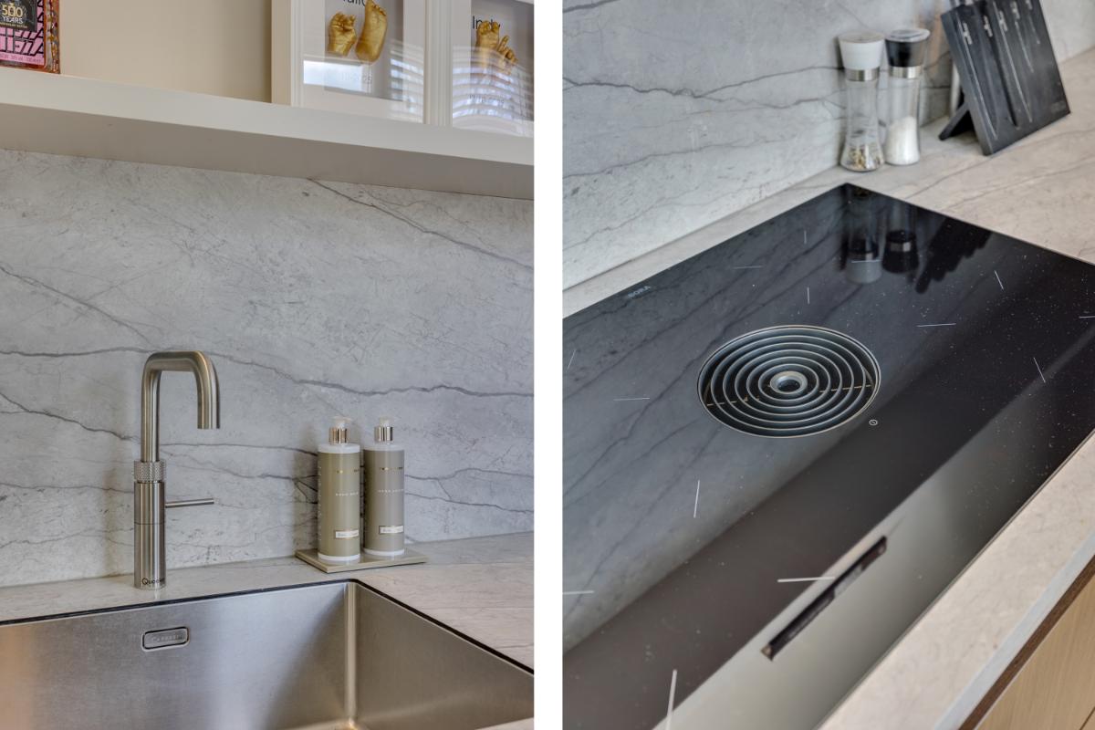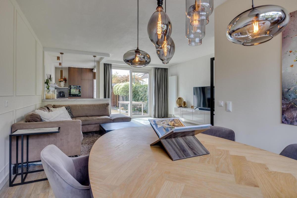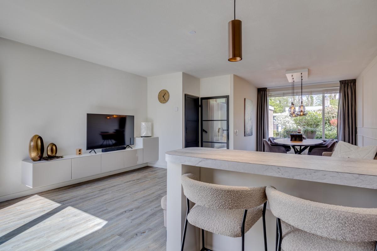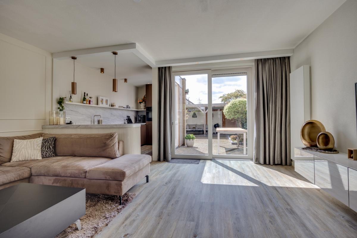 De moderne keuken ligt eveneens aan de achterzijde en is in 2023 volledig vernieuwd. De keuken is van alle gemakken voorzien en beschikt over diverse inbouwapparatuur zoals een vaatwasmachine, inductieplaat, afzuigkap, oven en koel-vriescombinatie. Via de keuken wandel je gemakkelijk de op he zuidwest gelegen achtertuin in.