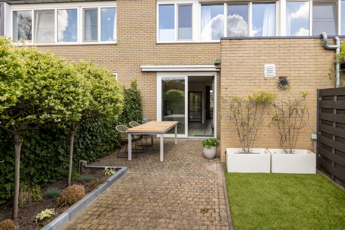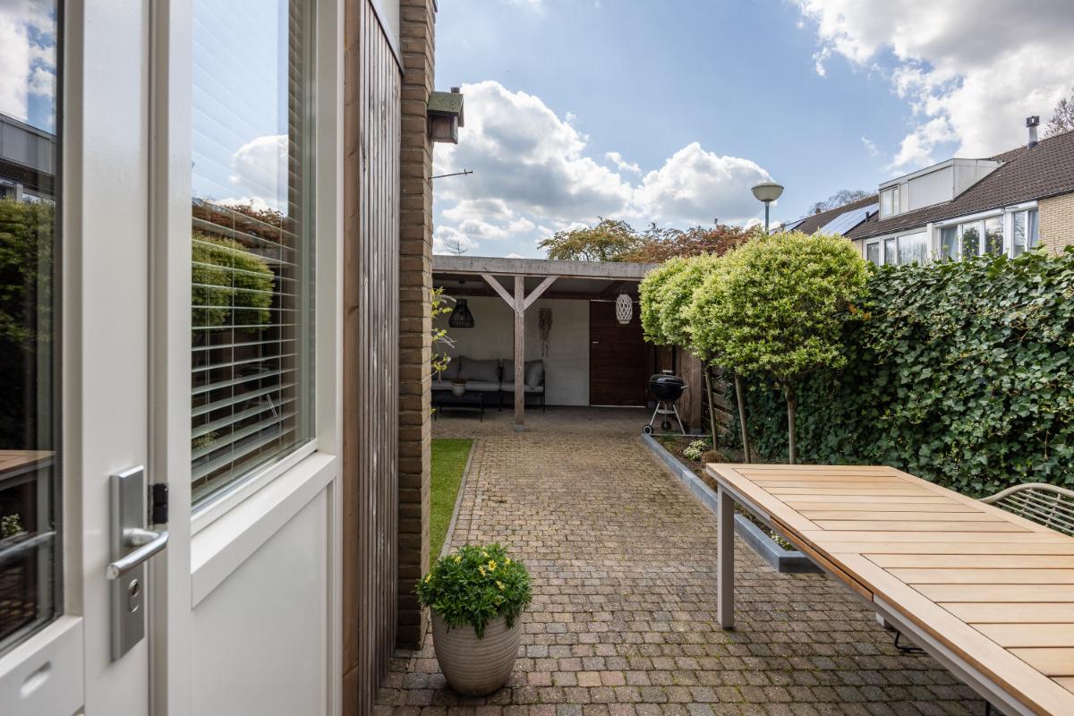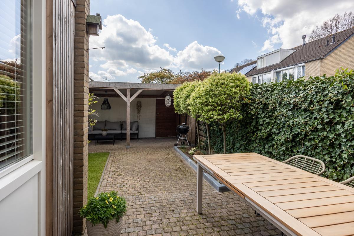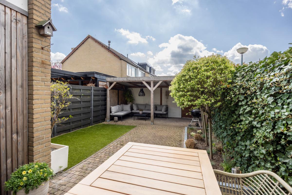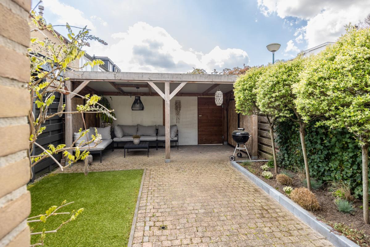 De achtertuin is een absoluut pluspunt van deze woning. Gelegen op de zon en voorzien van een sfeervolle overkapping, is dit de plek om te ontspannen, te borrelen of lange zomeravonden door te brengen met vrienden en familie. In de overkapping bevindt zich ook een poort waardoor de tuin gemakkelijk bereikbaar is vanaf de achterzijde.