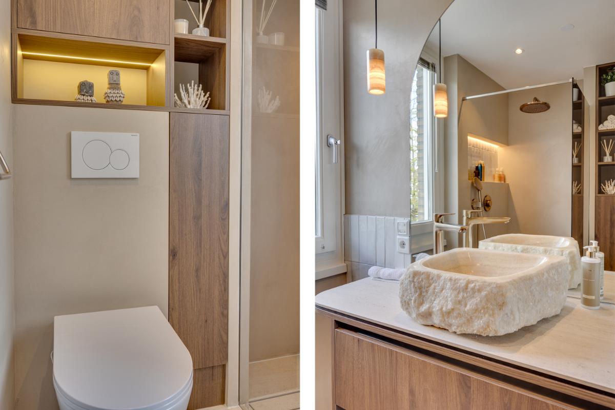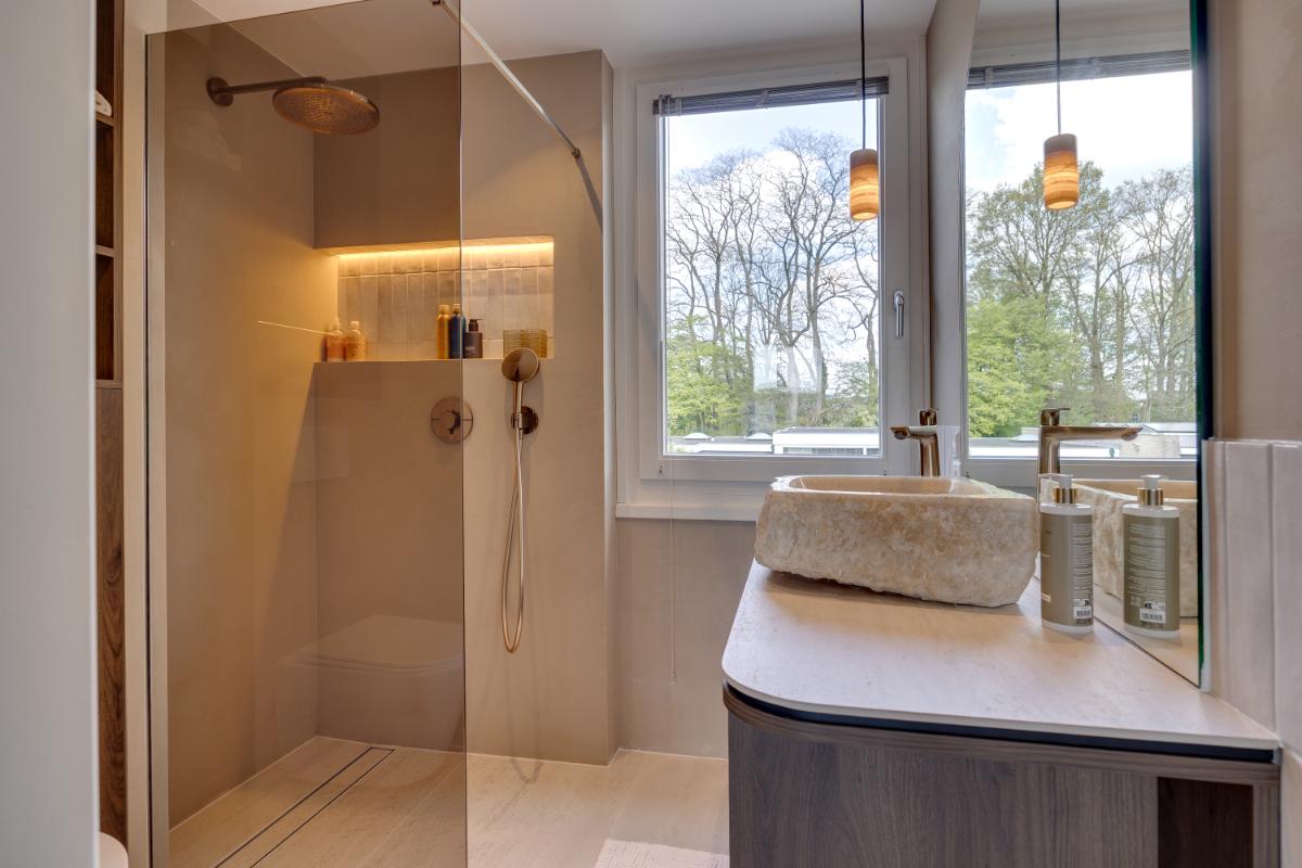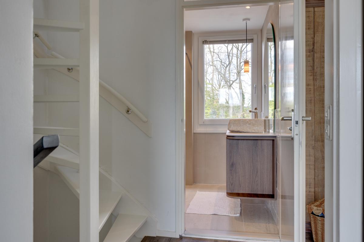 Op de eerste verdieping bevinden zich drie ruime slaapkamers en een moderne badkamer, die eveneens recent is vernieuwd. De badkamer heeft een frisse, eigentijdse uitstraling met inloopdouche, zwevend toilet en meubel met prachtige wastafel.