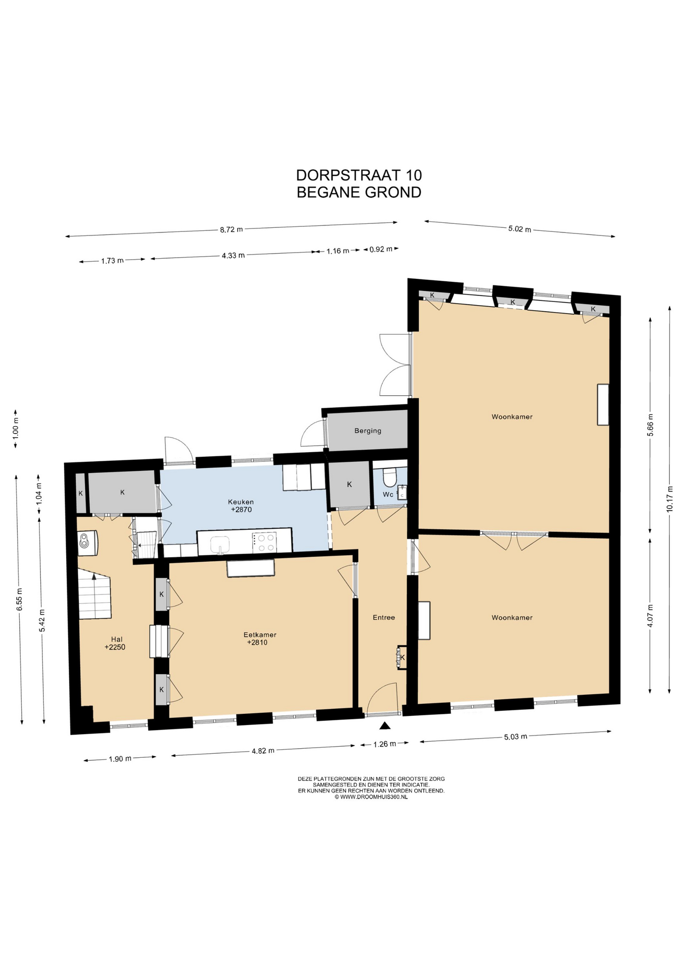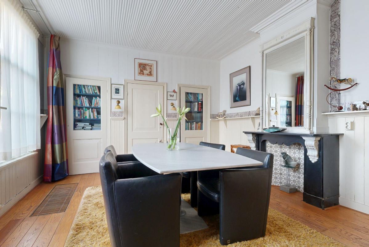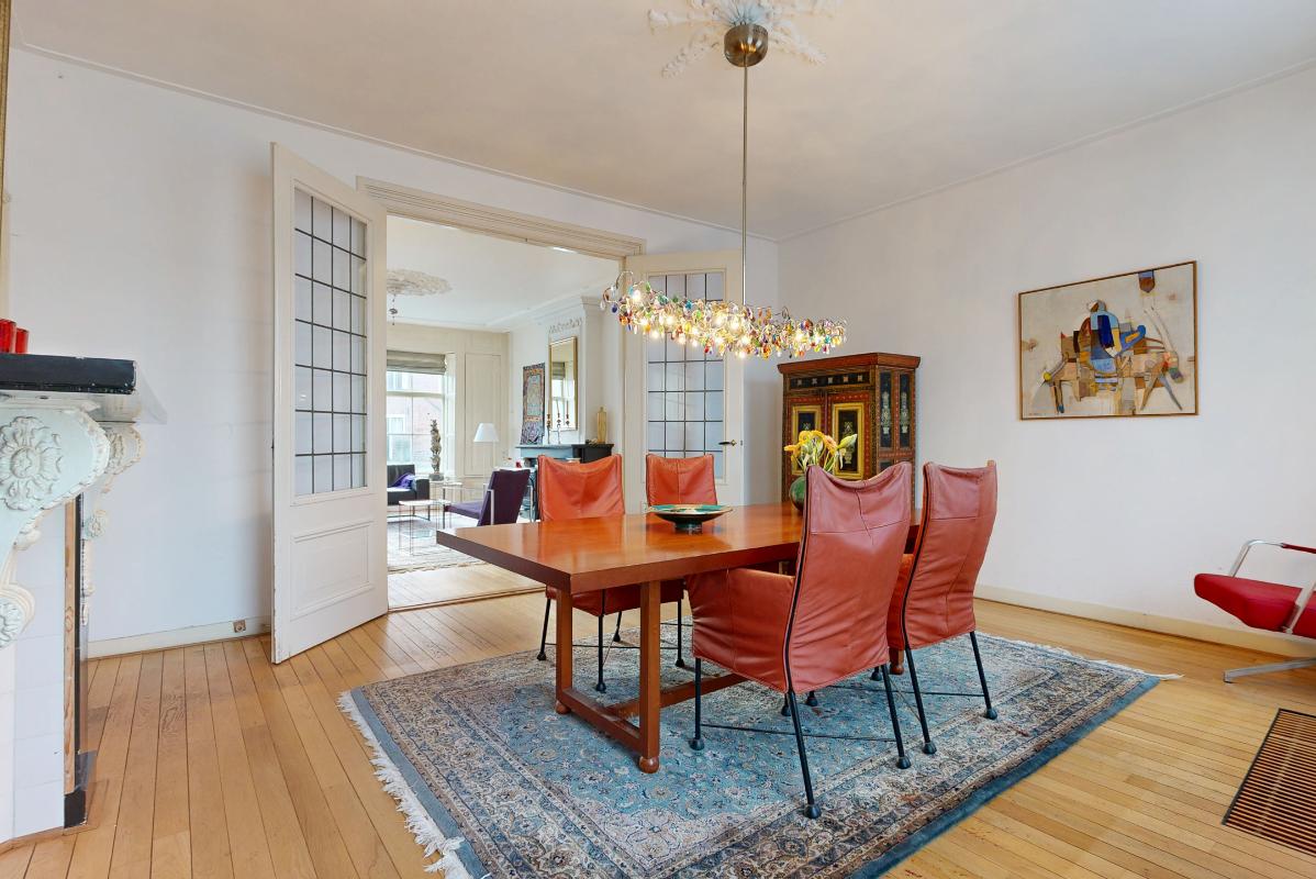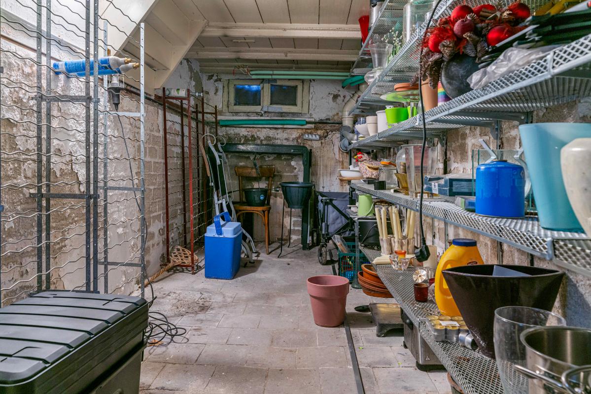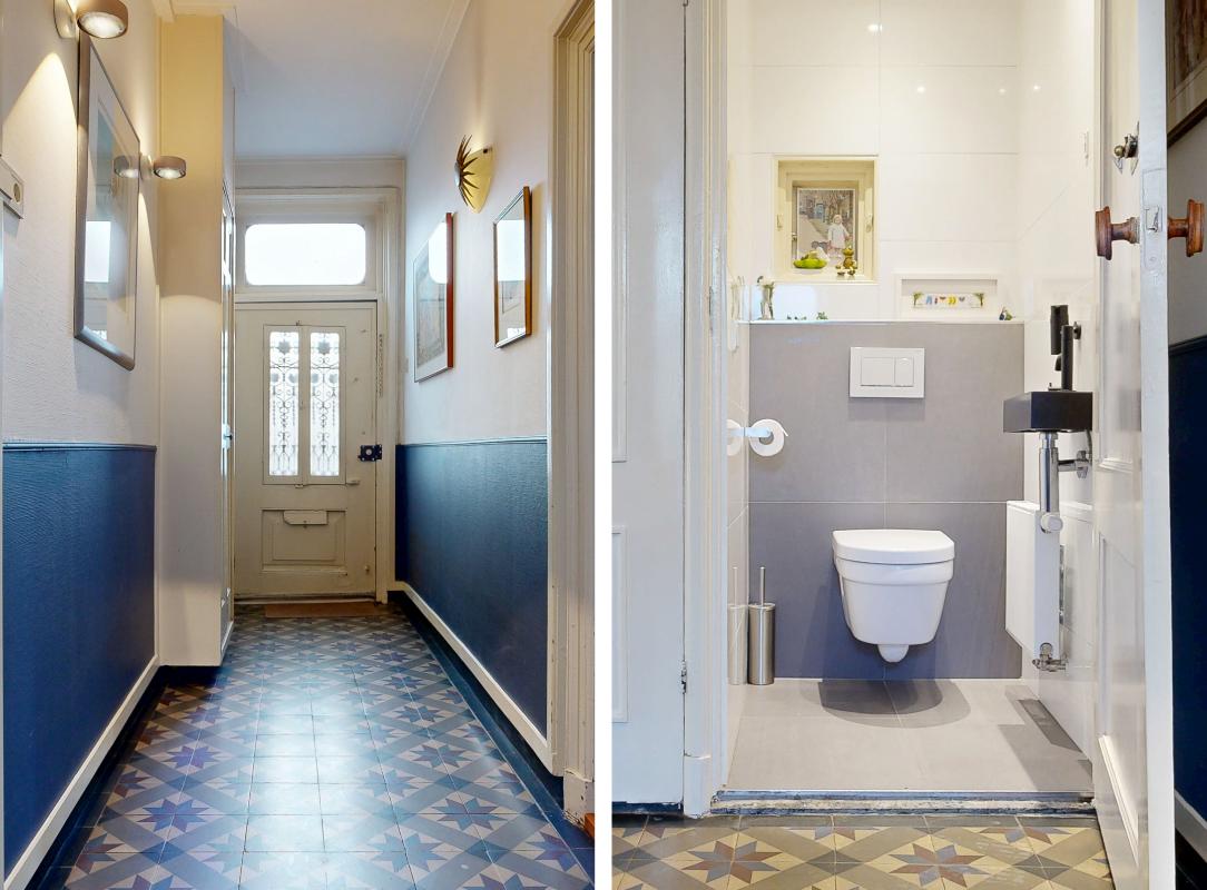 Bij binnenkomst valt direct de authentieke hal op met een patroon tegelvloer, meterkast, toilet en berging. Aan de rechterzijde bevindt zich de woonkamer met sfeervolle schouw en en-suite deuren, waardoor je de ruimte flexibel kunt indelen. Vanuit hier loop je zo de achtertuin in. Aan de linkerzijde vind je de eetkamer, eveneens met schouw, de keuken, een bergkast en toegang tot zowel de achtertuin als de kelder.