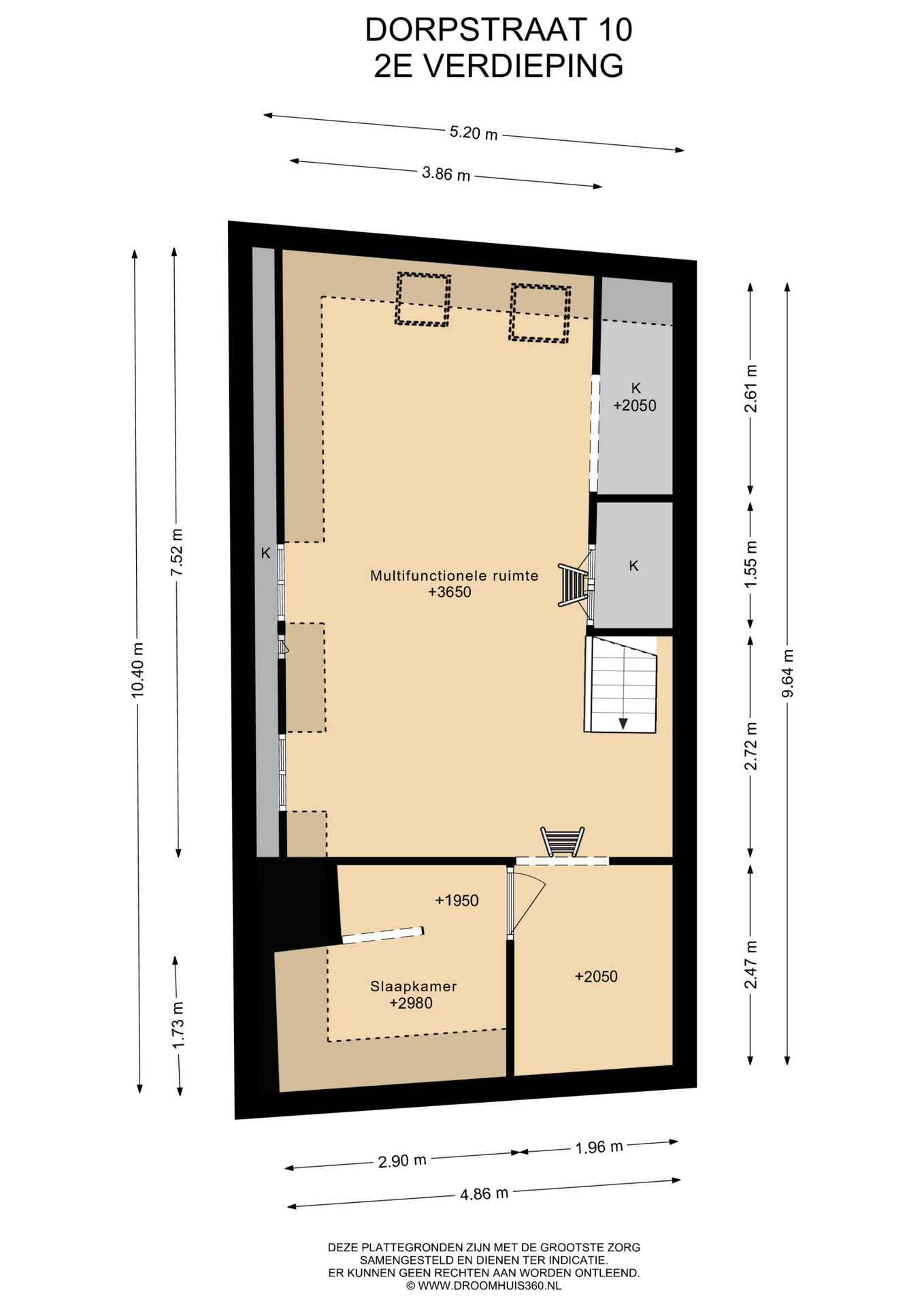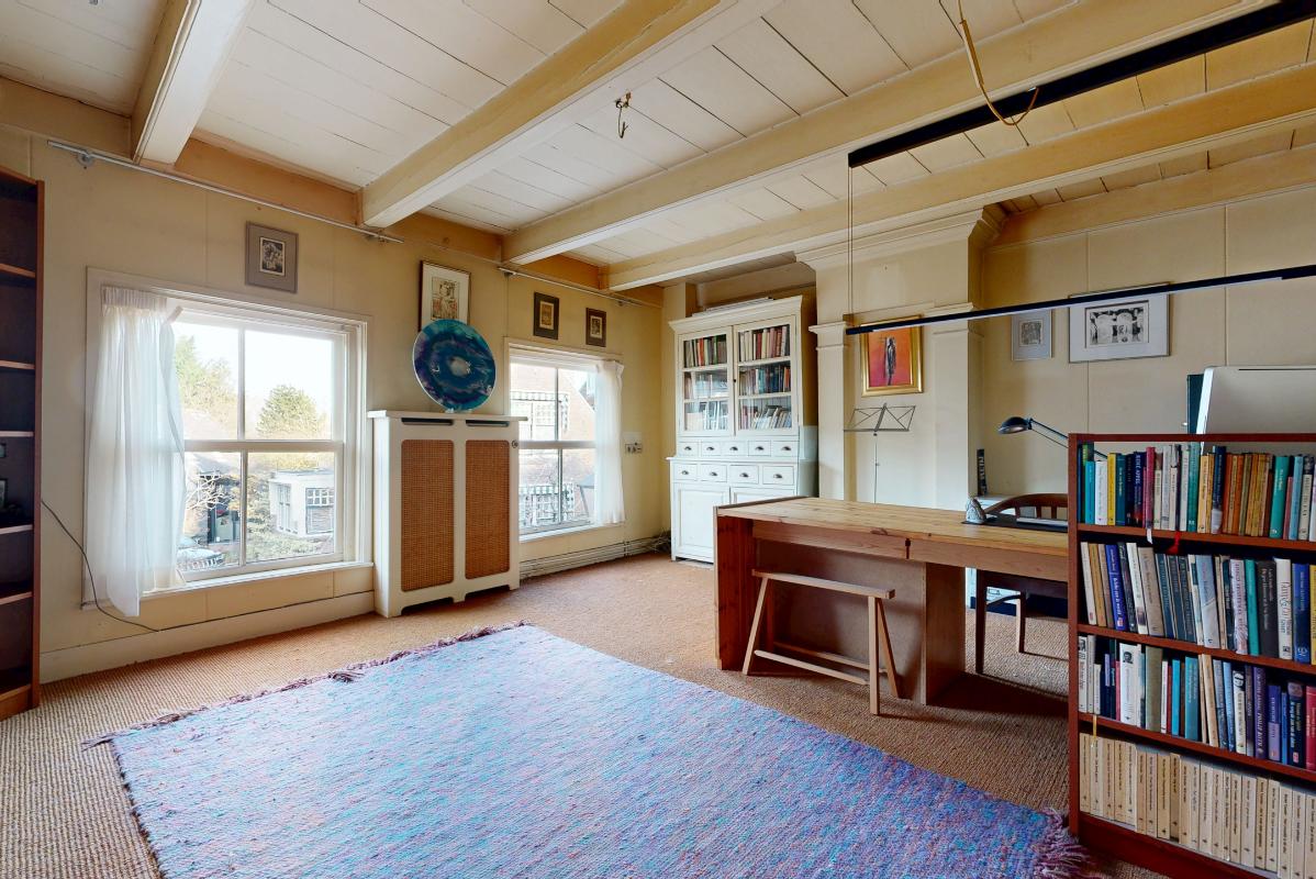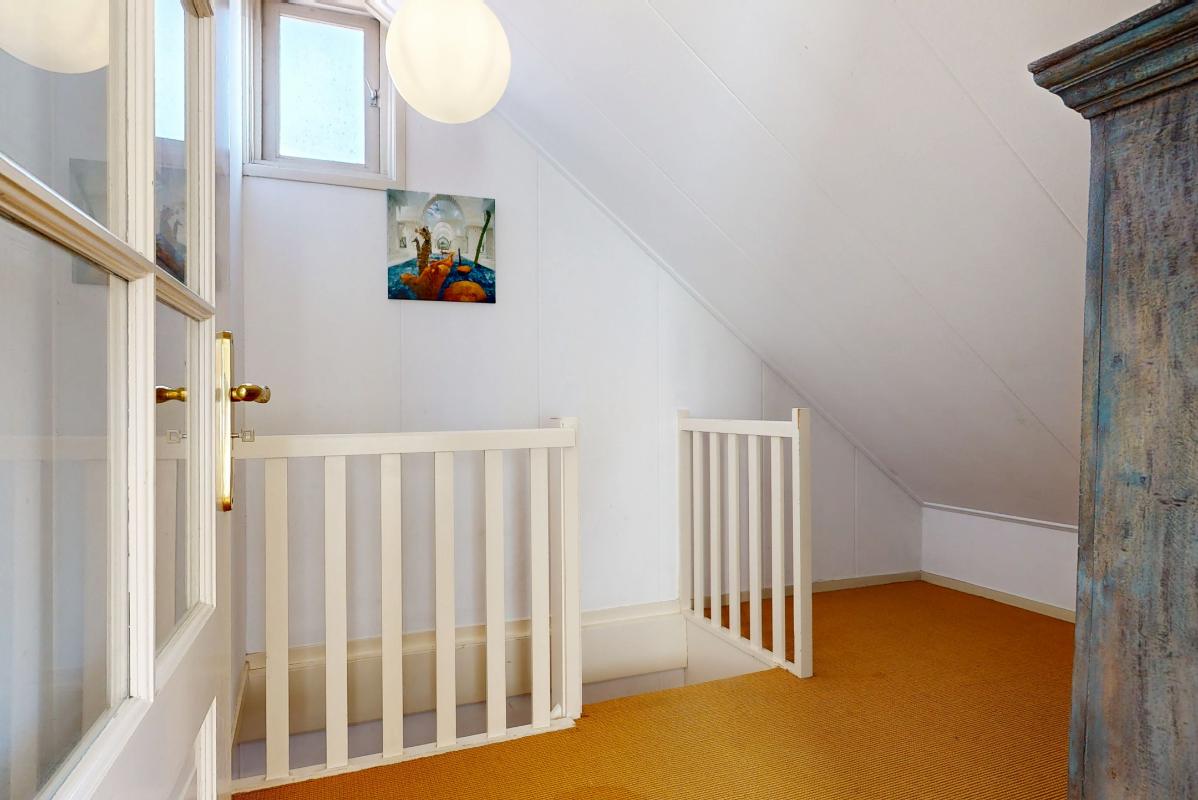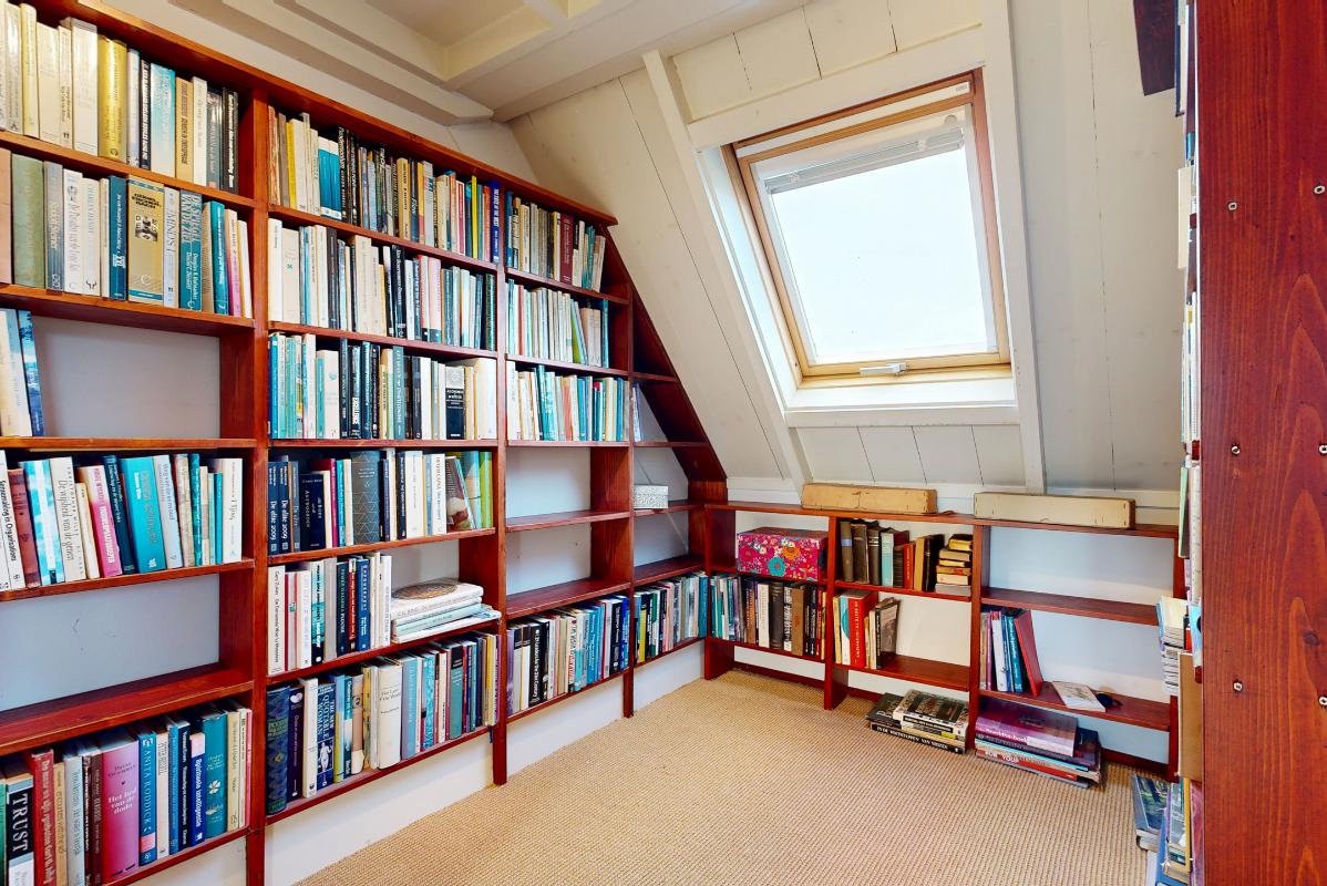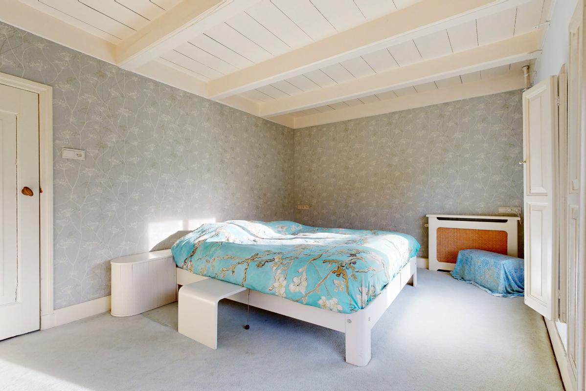De tweede verdieping verrast met een royale open ruimte met balkenconstructie en inbouwkasten, ideaal als slaapkamer, werk- of hobbyruimte, plus een extra (slaap)kamer aan de voorzijde.