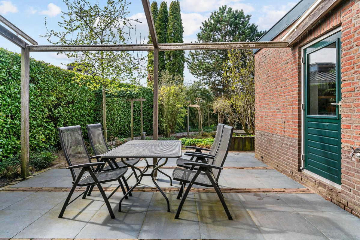 De achtertuin bereik je via de woonkamer, bijkeuken of achterom. De tuin ligt op het zuidwesten, dus volop zon! Met sierbeplanting, een terras en veel privacy is dit een heerlijke plek om te ontspannen. Parkeren doe je op eigen terrein dankzij de ruime oprit en carport met directe toegang tot de bijkeuken en achtertuin.