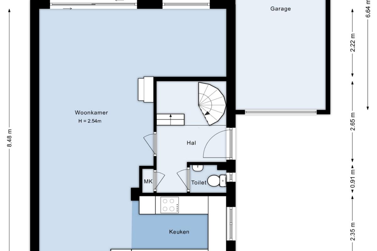 Garage: De aangebouwde garage is 2,95 meter diep en 6,64 meter breed. Tevens bereikbaar via een deur vanuit de achtertuin.