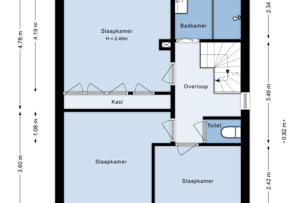 2e Etage: Royale overloop met opstelruimte voor de CV-ketel (2022). Ruime vierde slaapkamer voorzien van een dakkapel. Deze etage beschikt over veel bergruimte in de vaste kasten en achter de knieschotten.