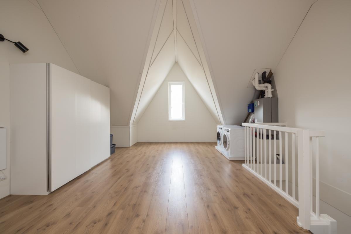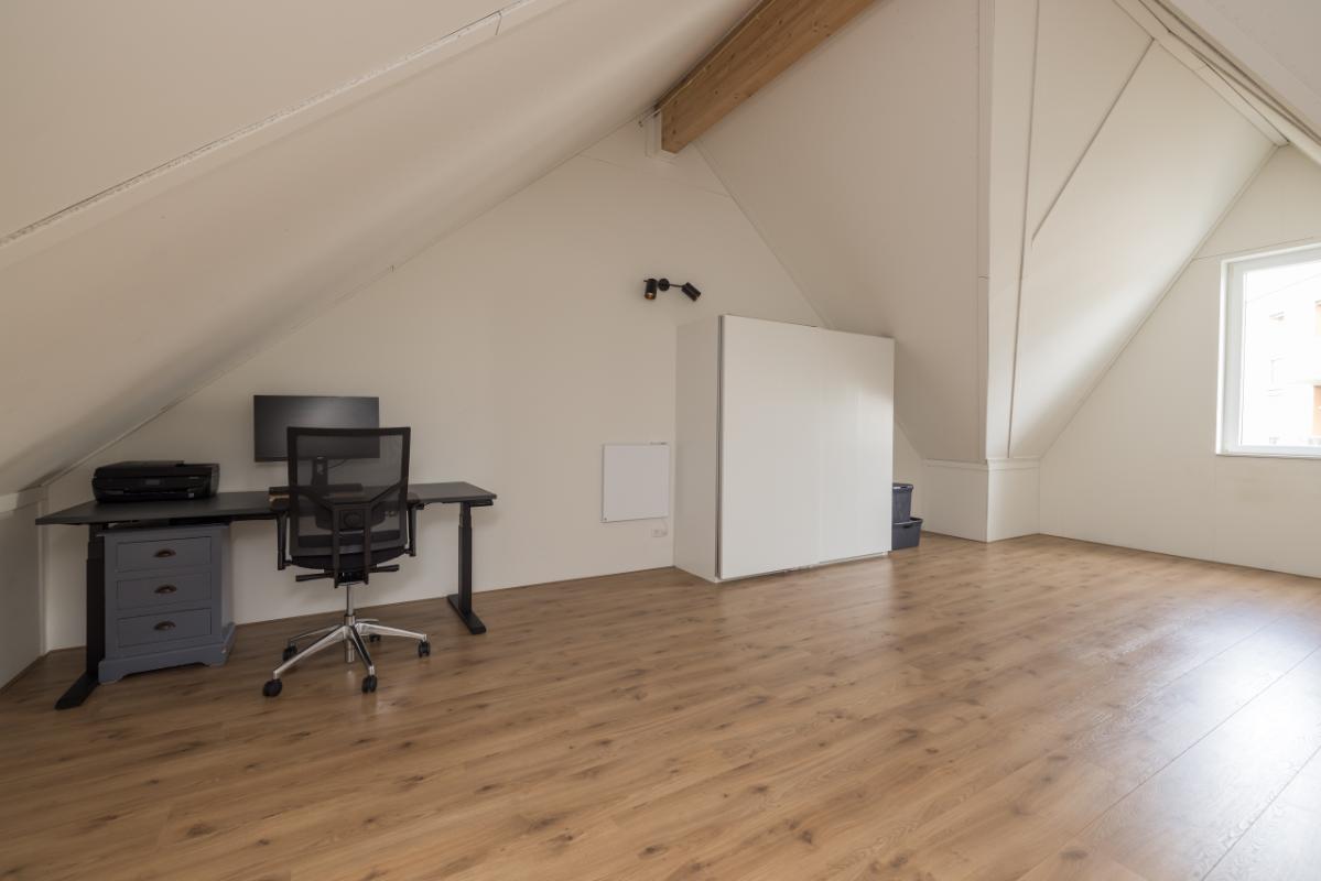De ruimte is momenteel in gebruik als grote kamer, maar biedt volop mogelijkheden voor vrije indeling. Aan de achterzijde kan eenvoudig een dakkapel of dakraam worden geplaatst, waarmee een extra (slaap)kamer gerealiseerd kan worden.
