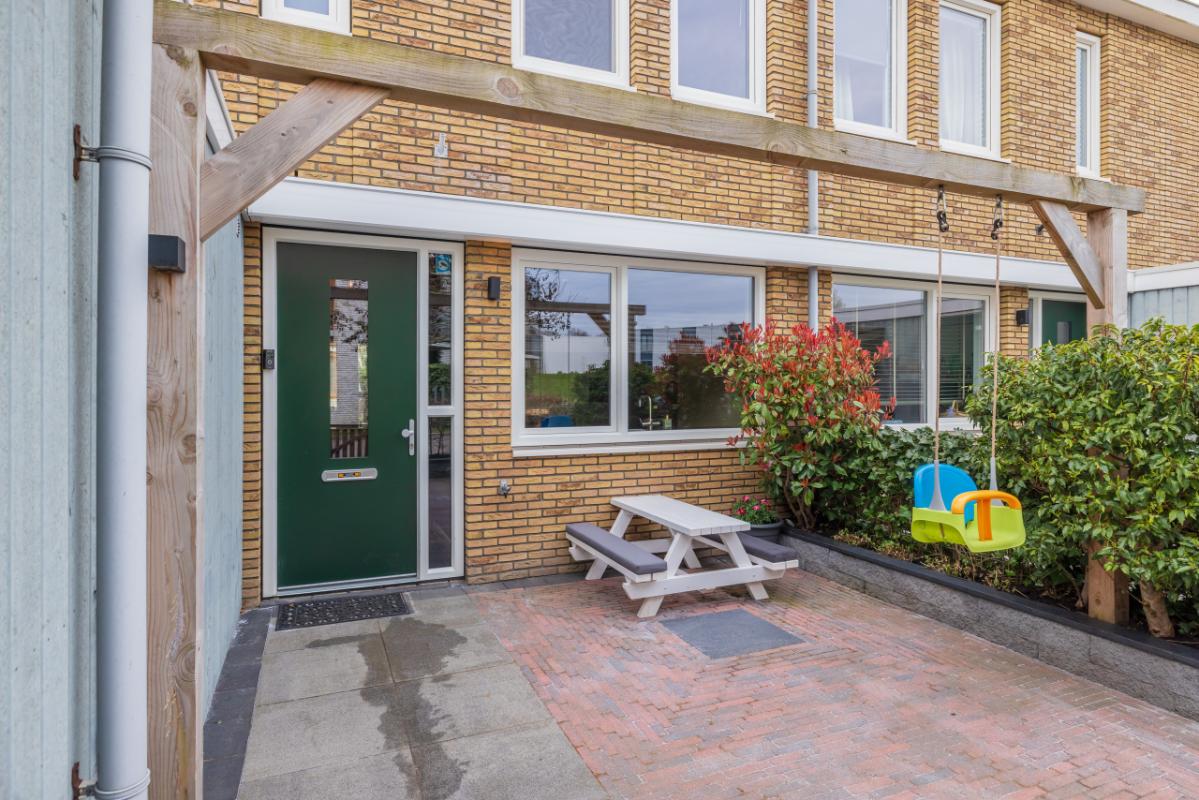 Tuin De voortuin is verzorgd aangelegd met sierbestrating, verhoogde plantenborders met fraaie beplanting en een beukenhaag aan de voorzijde. De afvalbakken zijn netjes uit het zicht geplaatst achter een groene afscheiding. Verder is er een houten pergola, in gebruik als schommel, en toegang tot de berging (ca. 5 m²). Een fijne plek om in de avond nog even van het zonnetje te genieten.