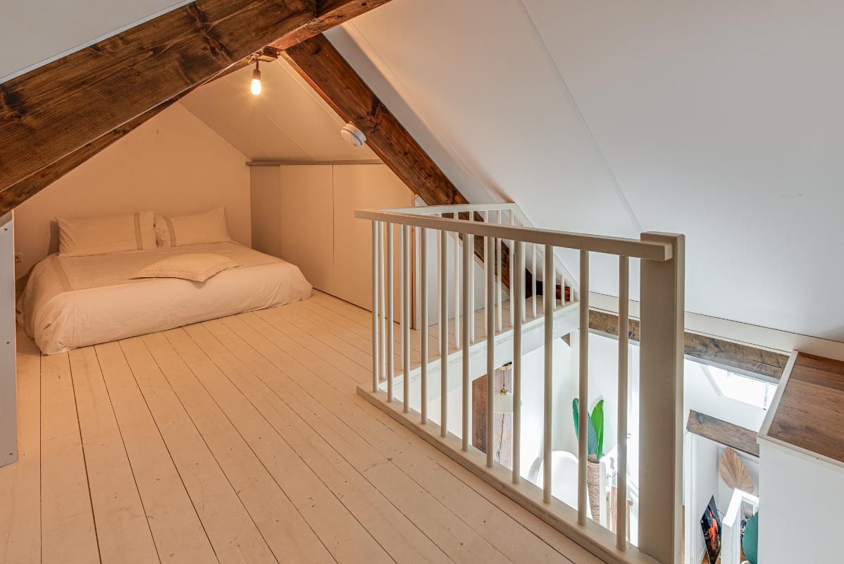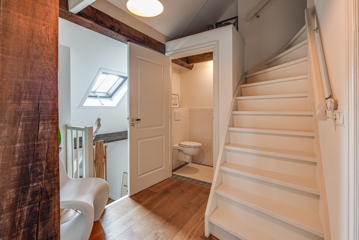 Zolder: Via vaste trap bereikbaar, verrassend ruim met veel bergruimte en plek voor een logeerbed of werkhoek.