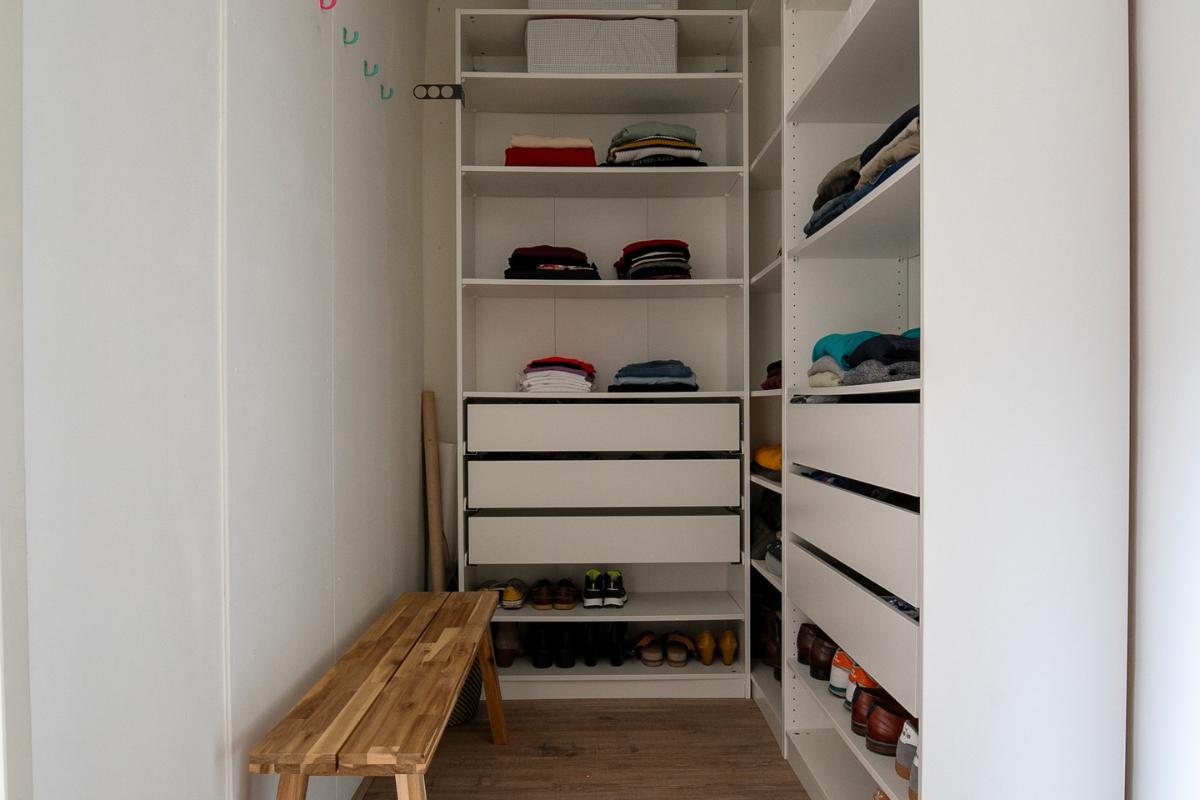 Bergruimte: Gecreëerde berging met stellingkasten.