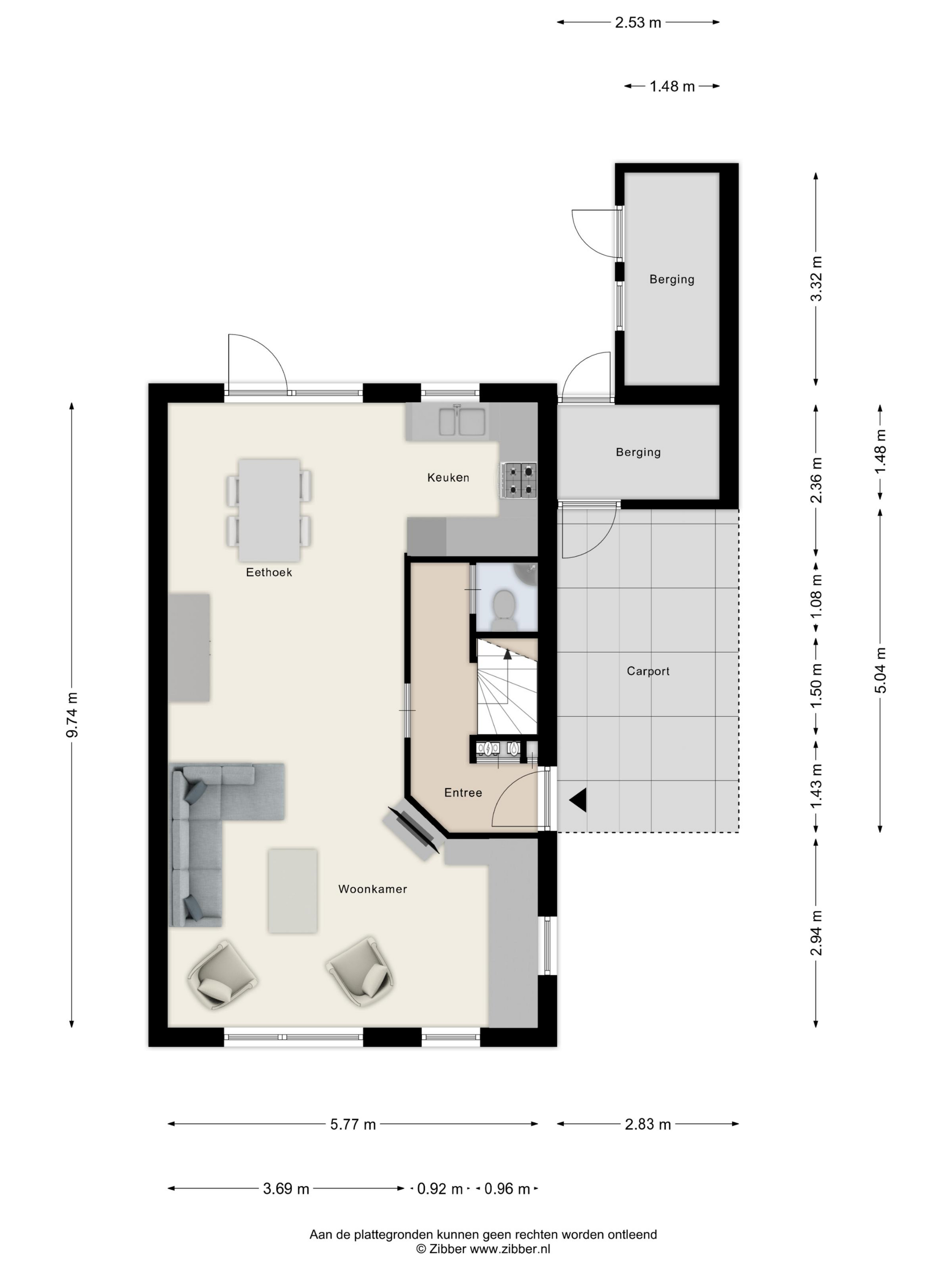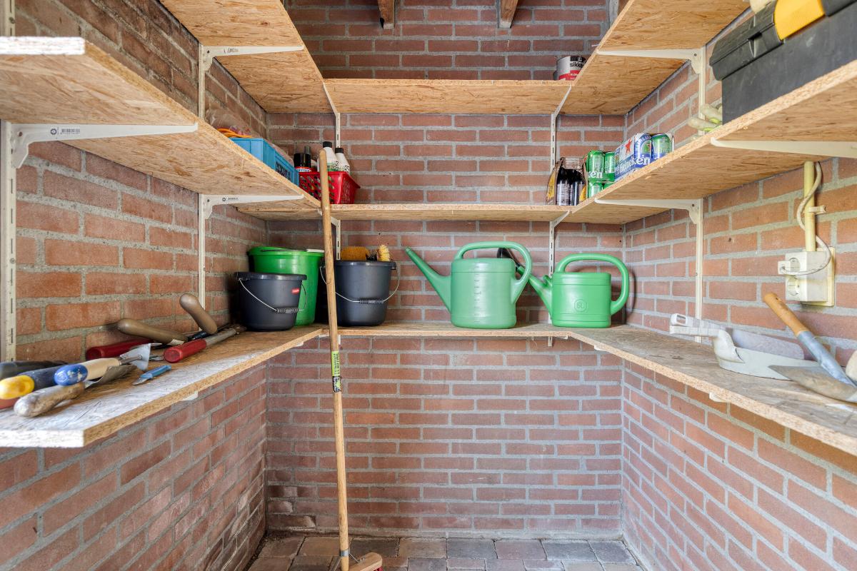Berging: Naast de woning bevindt zich een aangebouwde stenen berging met elektra (ca. 2,60 x 1,35 m), bereikbaar vanuit zowel de carport als de tuin. Achter in de tuin staat bovendien een extra houten tuinhuisje voor extra bergruimte.