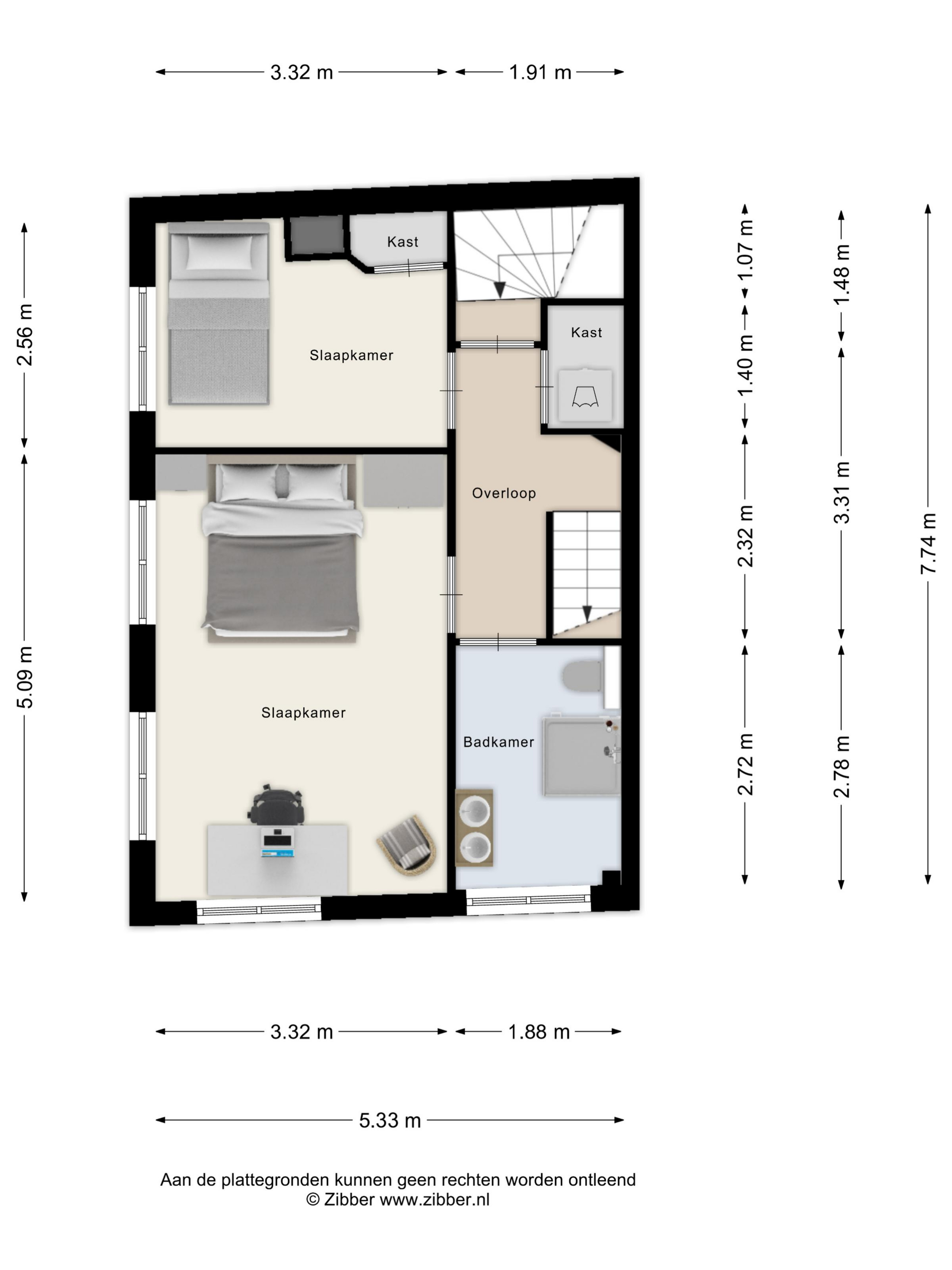 Slaapkamer 2 Aan de zijkant van de woning (zijde Kaatsbaan) ligt een kleinere slaapkamer met een inbouwkast.