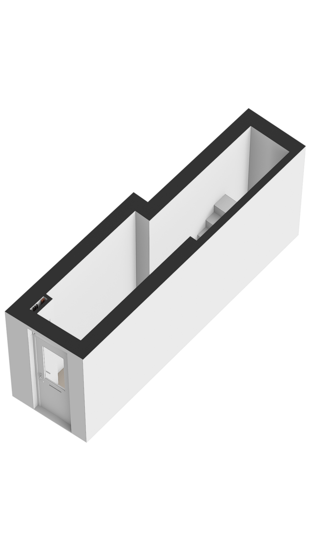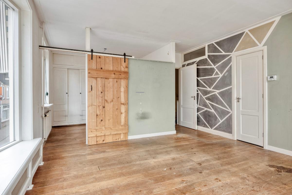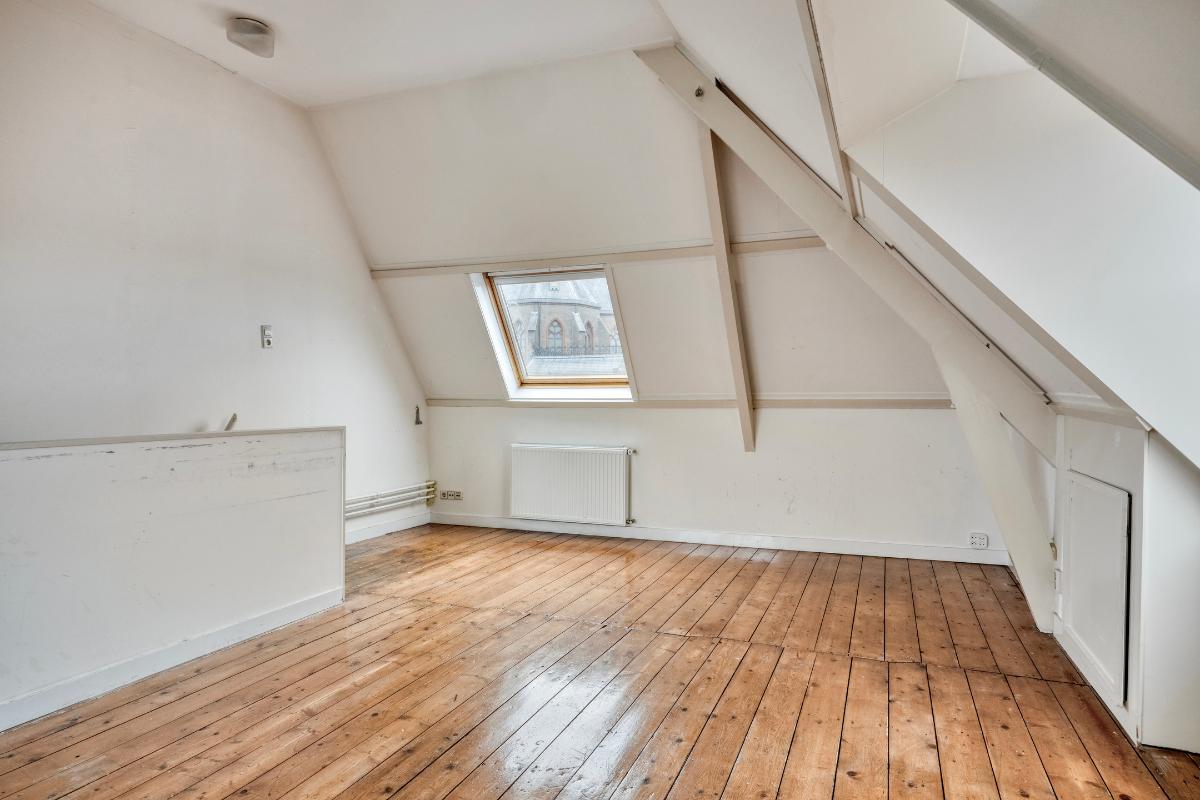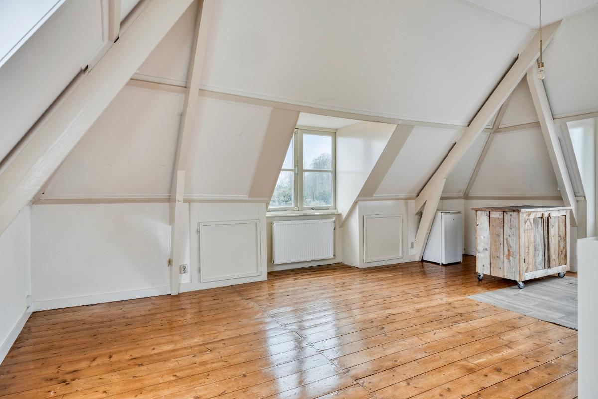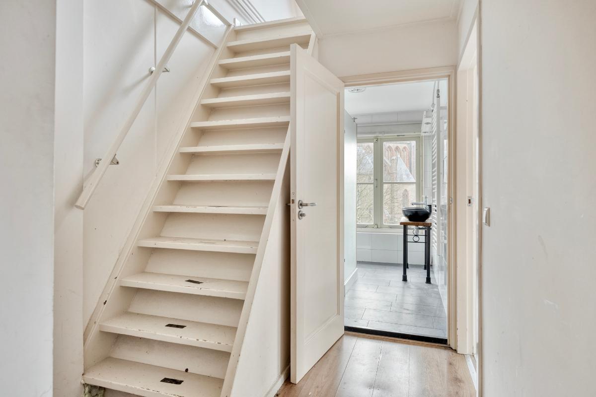 Bovenaan de trap bevindt zich een afsluitbare deur. Deze verdieping was voorheen in gebruik als een tweede appartement.
