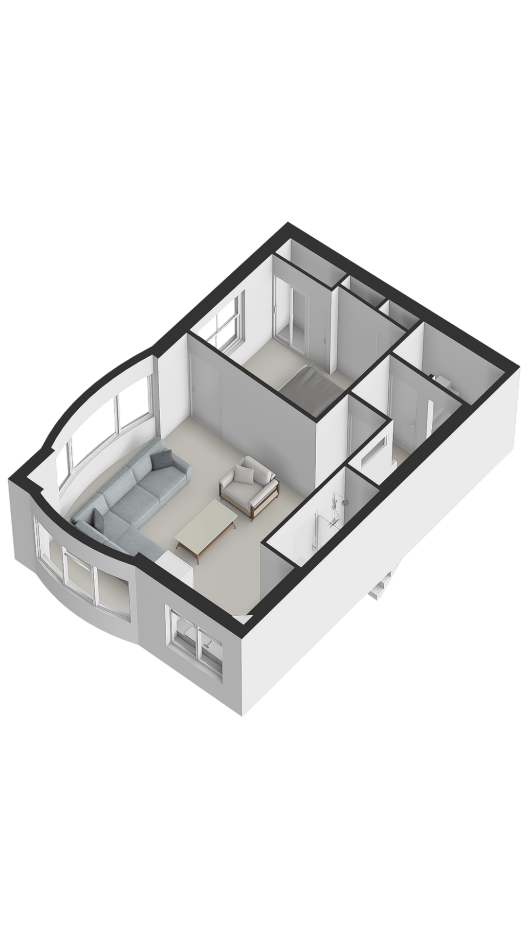 Slaapkamer 3 Op de hoek van het appartement bevindt zich een zeer ruime slaapkamer met ramen aan twee zijden, wat zorgt voor veel lichtinval.