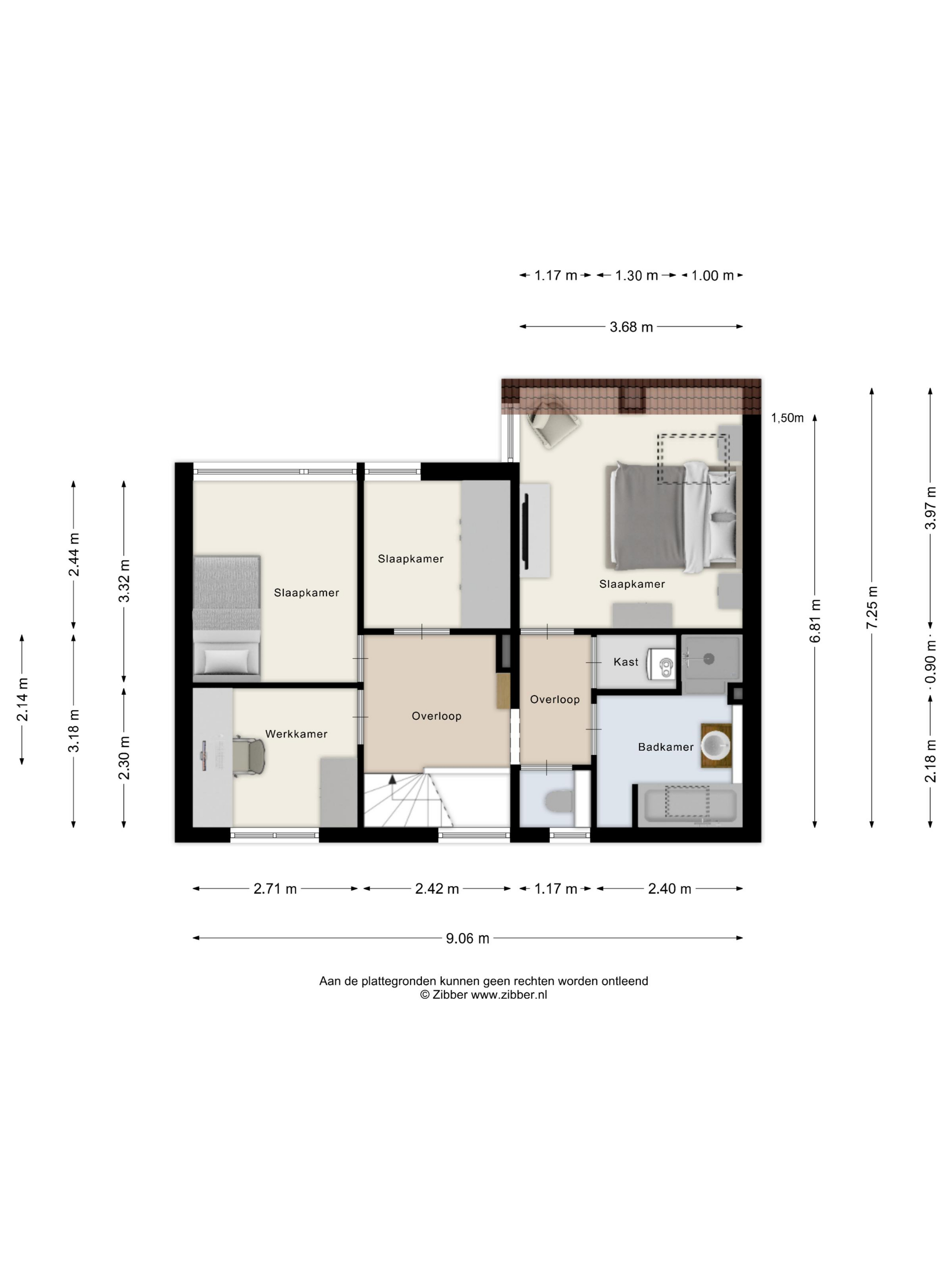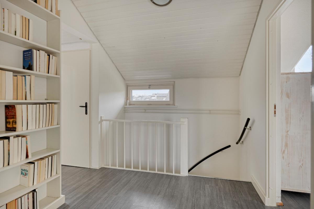 Overloop: De overloop biedt toegang tot vier slaapkamers, de badkamer, een separaat toilet en de bergvliering. Tevens bevindt zich hier de kast met de cv-ketel.