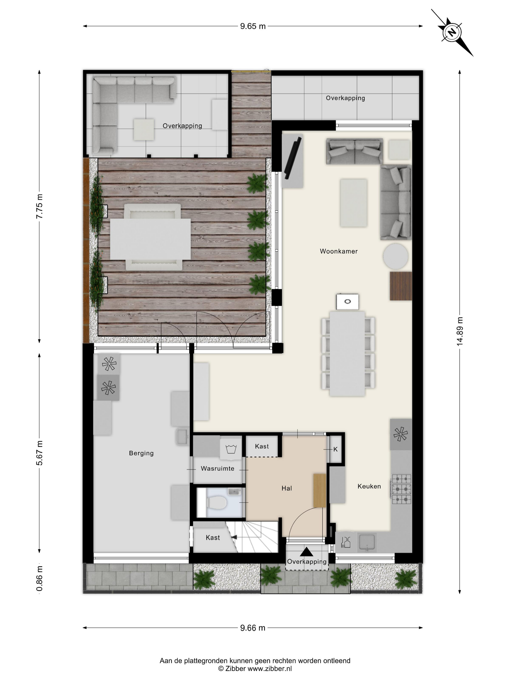 Begane grond: Entree: De woning beschikt over een verzorgde entree aan een rustige weg. De voortuin is ingericht met sierbestrating, bloempotten en een overkappinkje.