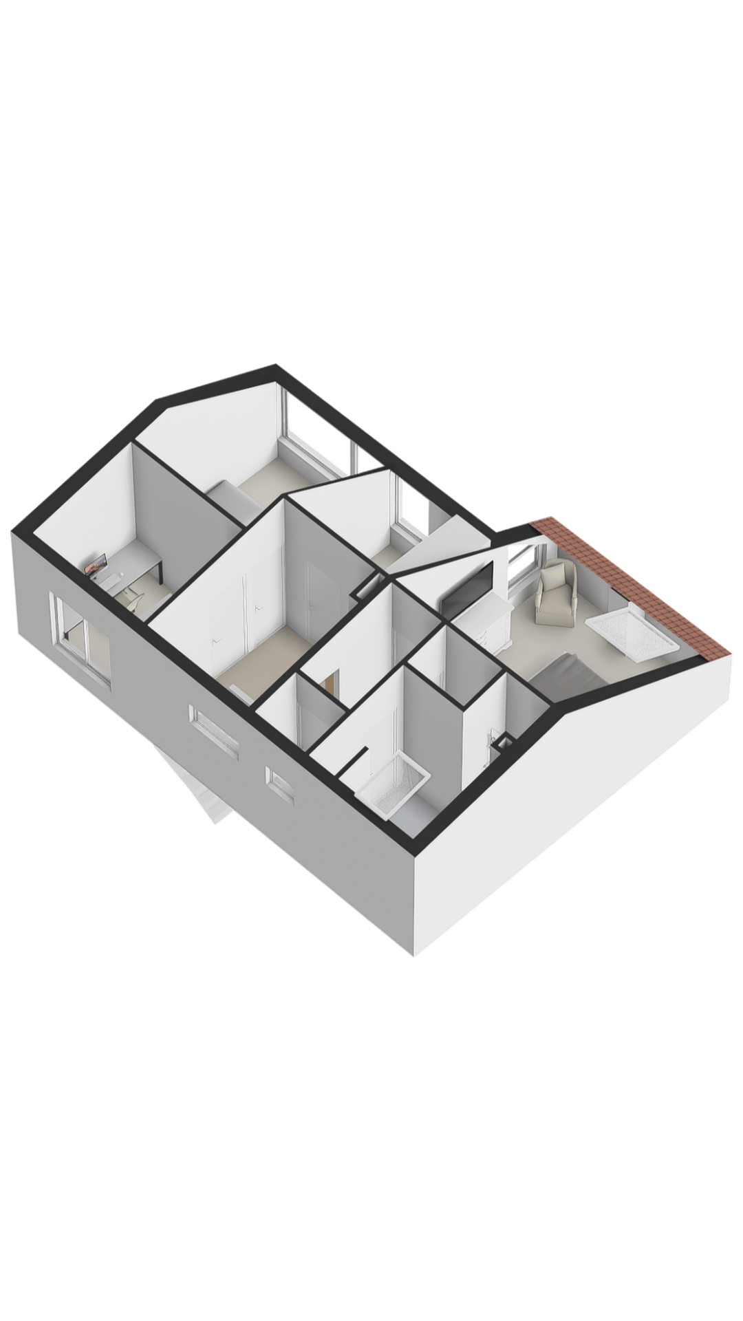 Slaapkamer 4: De (master)slaapkamers is eveneens gelegen aan de achterzijde en voorzien van een Velux dakraam.