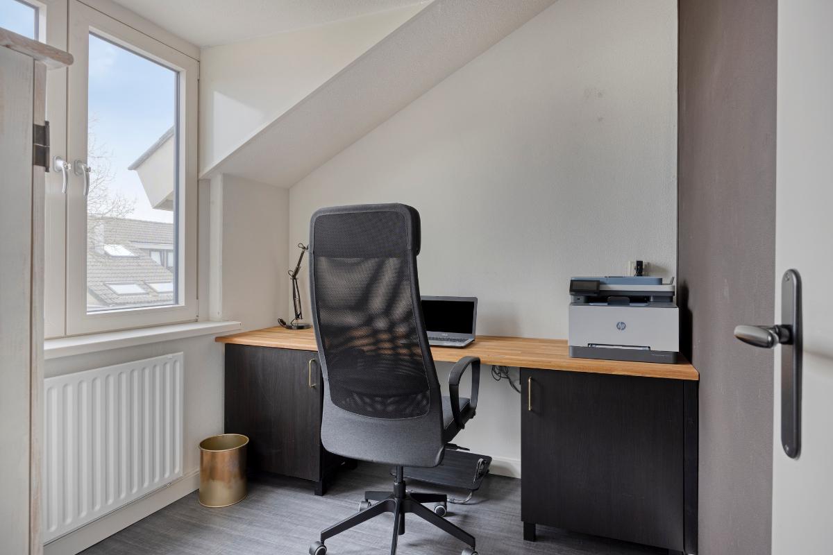 Slaapkamer 1: Deze slaapkamer is gelegen aan de voorzijde en op dit moment in gebruik als werkruimte.
