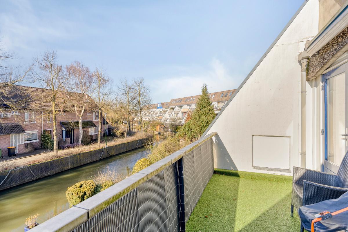 Balkon: Het balkon is gunstig gelegen op het westen, waardoor u hier volop kunt genieten van de middag- en avondzon. Het kunstgras en het privacy scherm geven het geheel een verzorgde en beschutte uitstraling. Daarnaast is het balkon voorzien van een zonnescherm. Vanaf het balkon heeft u vrij uitzicht over het water en de omliggende woningen – een rustige en aangename plek om buiten te verblijven.