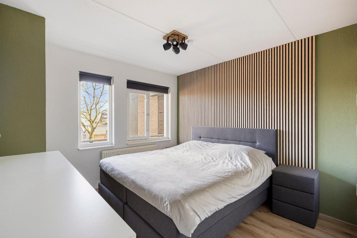 Slaapkamer: De master slaapkamer is gelegen aan de voorzijde is voorzien van gestuukte en geschilderde wanden, wat zorgt voor een rustige en verzorgde uitstraling. Voor optimaal comfort zijn er rolgordijnen en verduisterende rolluiken (2024, elektrisch bedienbaar met een afstandsbediening).