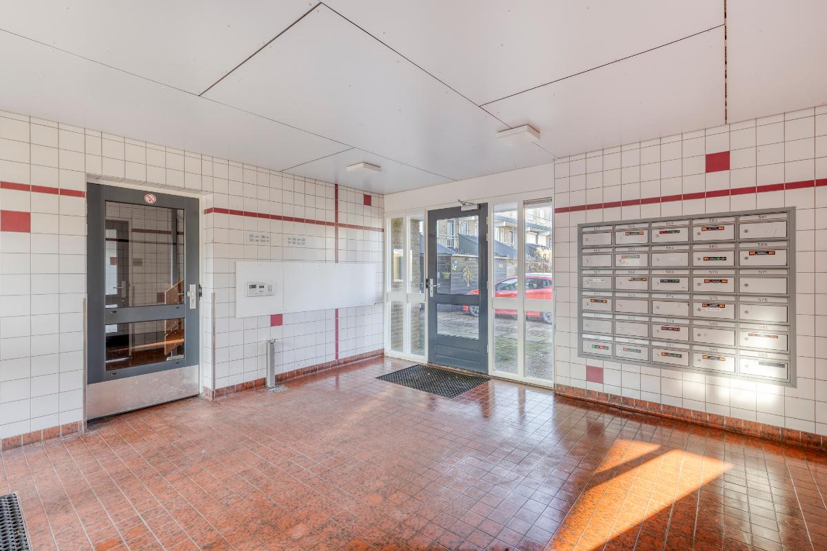 Begane grond: Entree appartementencomplex: De entree van het appartementencomplex is voorzien van een bellentableau, de brievenbussen, een trappenhuis én een lift, waarmee het appartement gemakkelijk bereikbaar is.