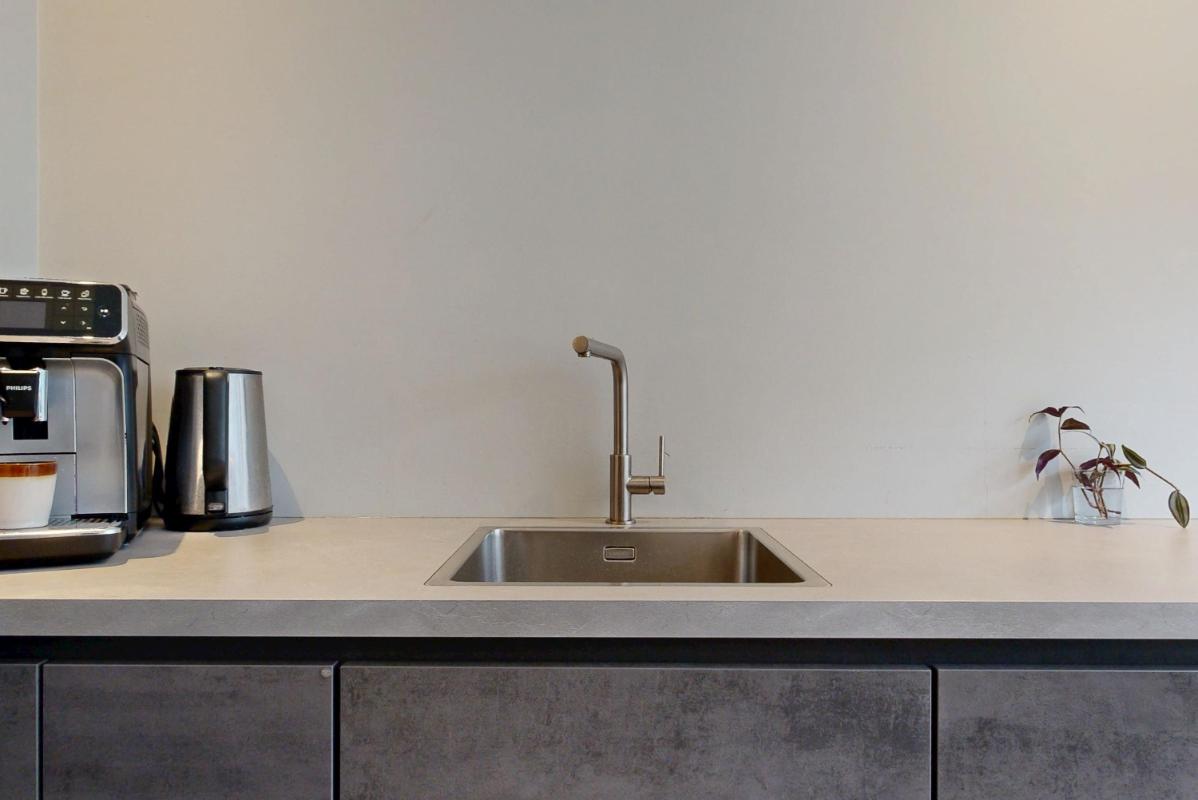 De moderne keuken uit 2022 is uitgerust met een inductiekookplaat, recirculatie afzuigkap, vaatwasser en oven. De losse koelkast en vriezer zijn ter overname.