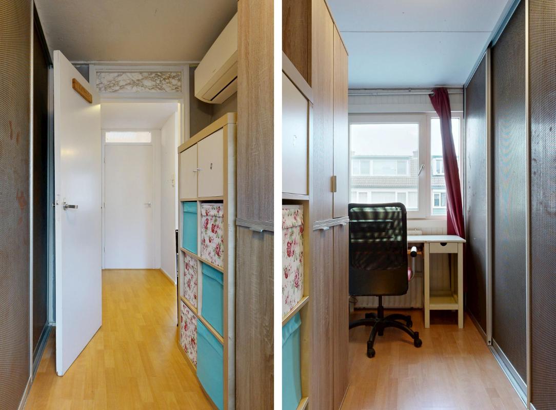 Op de verdiepingen bevinden zich in totaal vier slaapkamers, waardoor de woning geschikt is voor gezinnen, thuiswerken of hobbyruimte. Extra comfort wordt geboden door de twee airco's (met twee buitenunits): één in de woonkamer en één in de kleine slaapkamer aan de achterzijde.