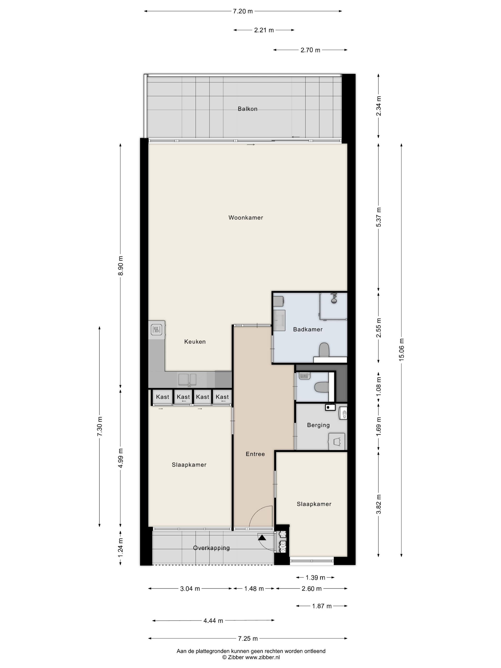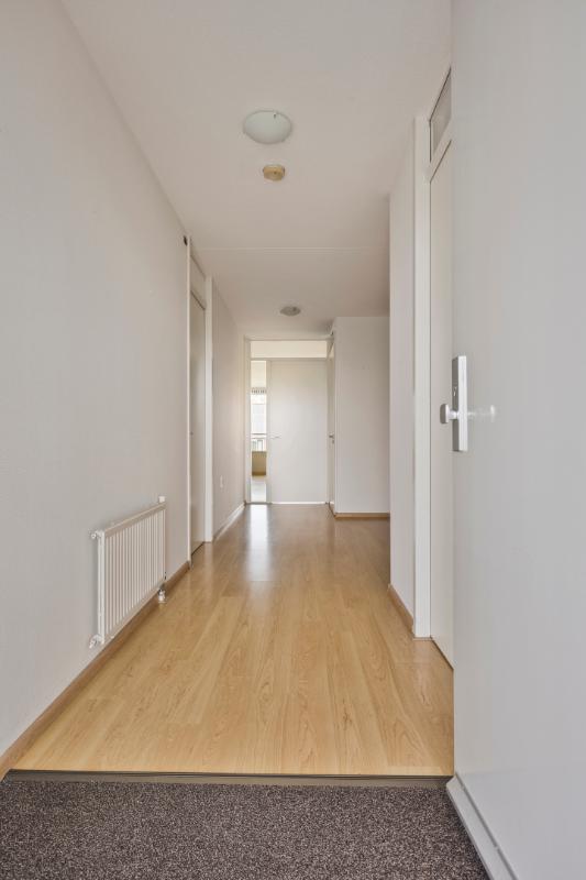 Hal: De hal (voorzien van noodknop) biedt toegang tot woonkamer met open keuken en balkon, 2 slaapkamers, de badkamer en de cv-/wasruimte. De hal is voorzien een toilet met fonteintje. (noodalarmering via trekkoord aanwezig in het toilet)