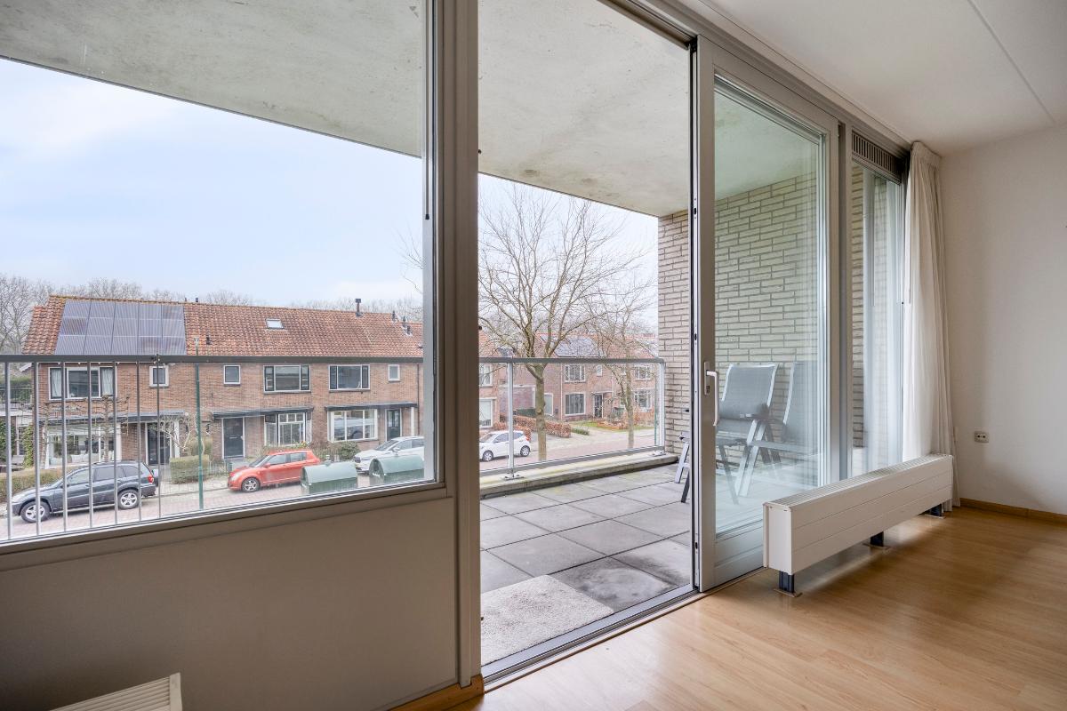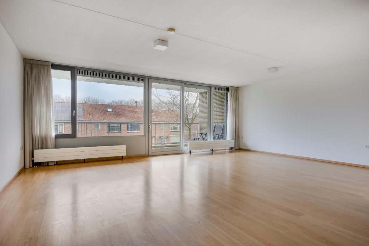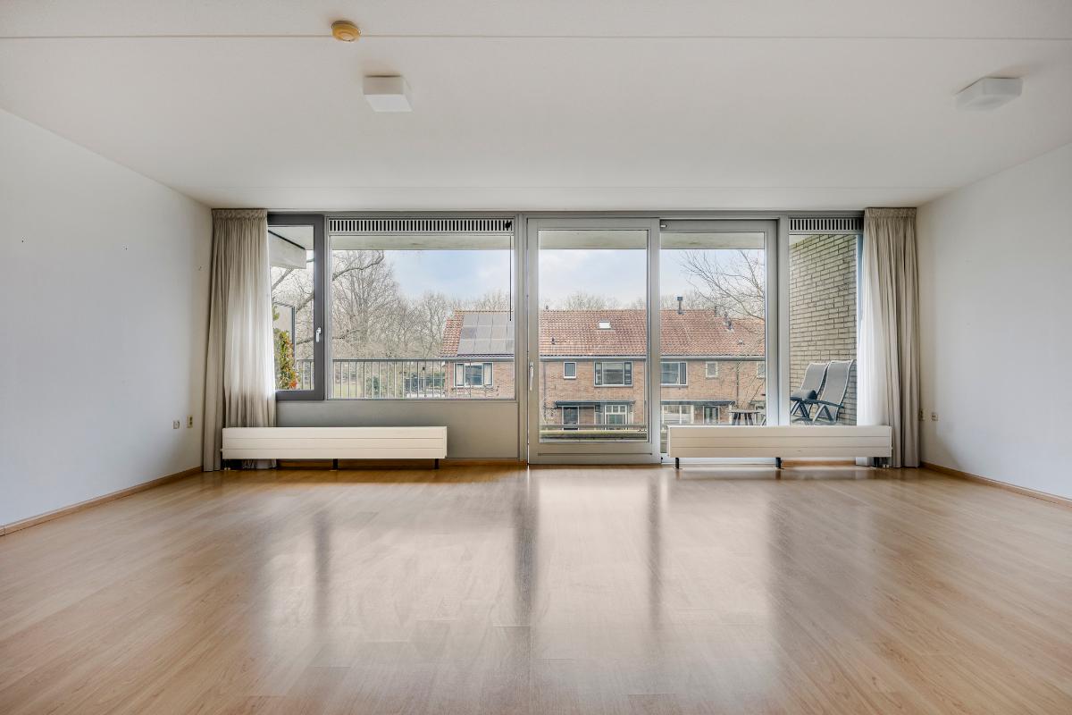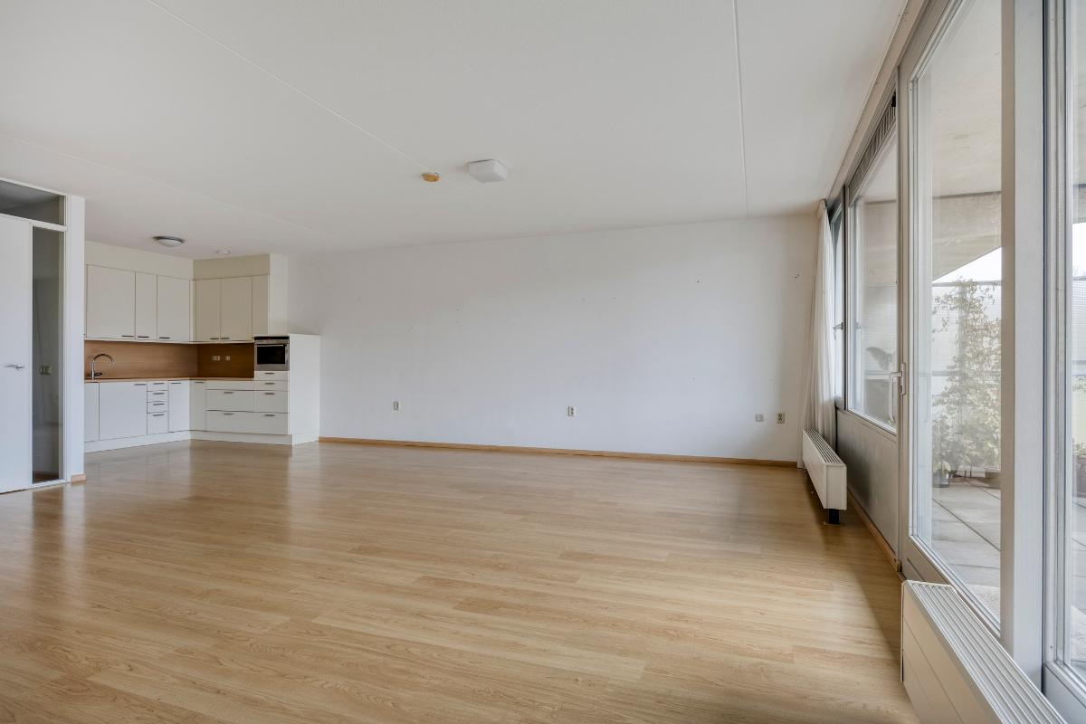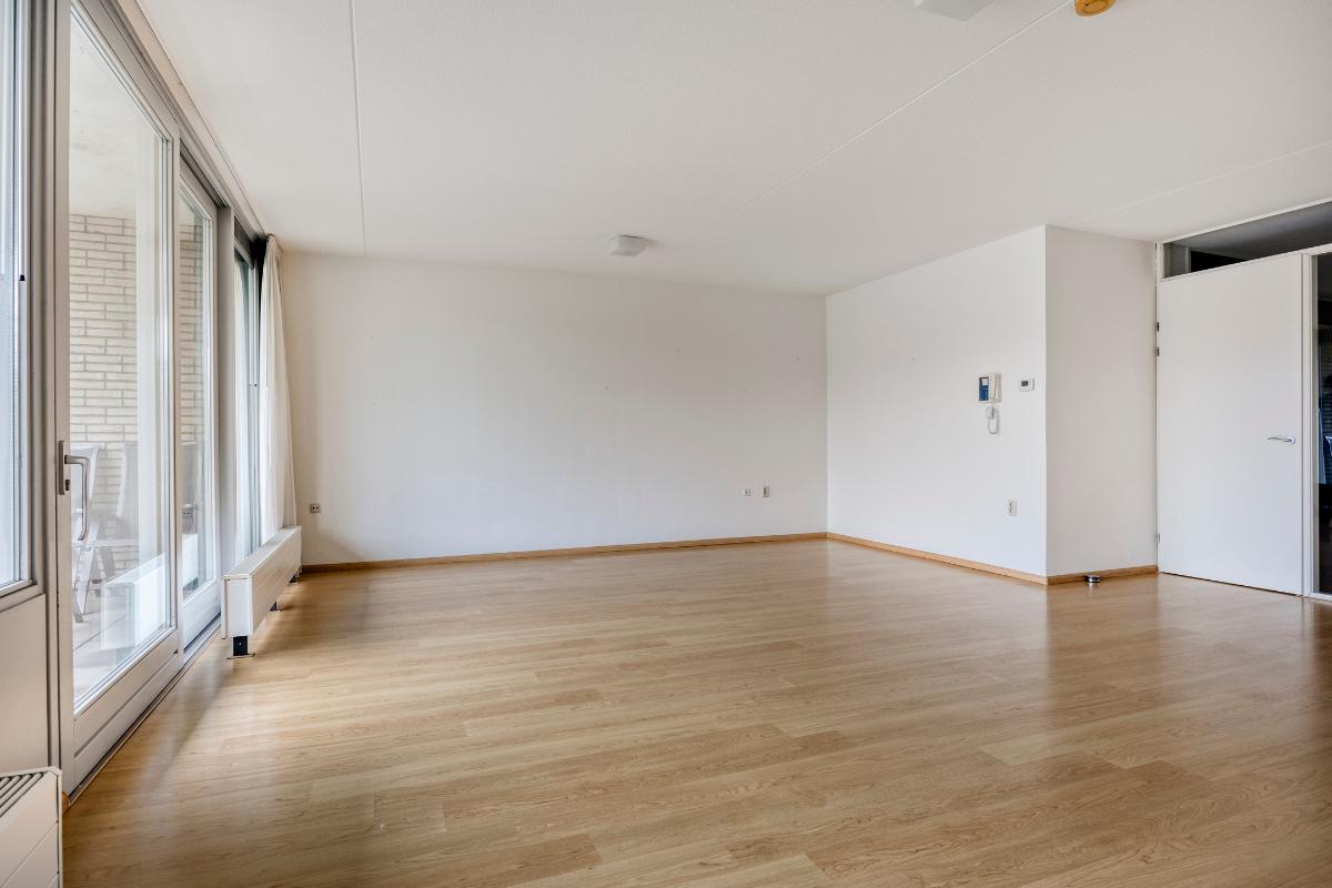 Woonkamer: De ruime woonkamer met open keuken is heerlijk licht dankzij de riante raampartijen en de schuifpui, die direct toegang biedt tot het balkon. Daarnaast is de woonkamer voorzien van een intercom.