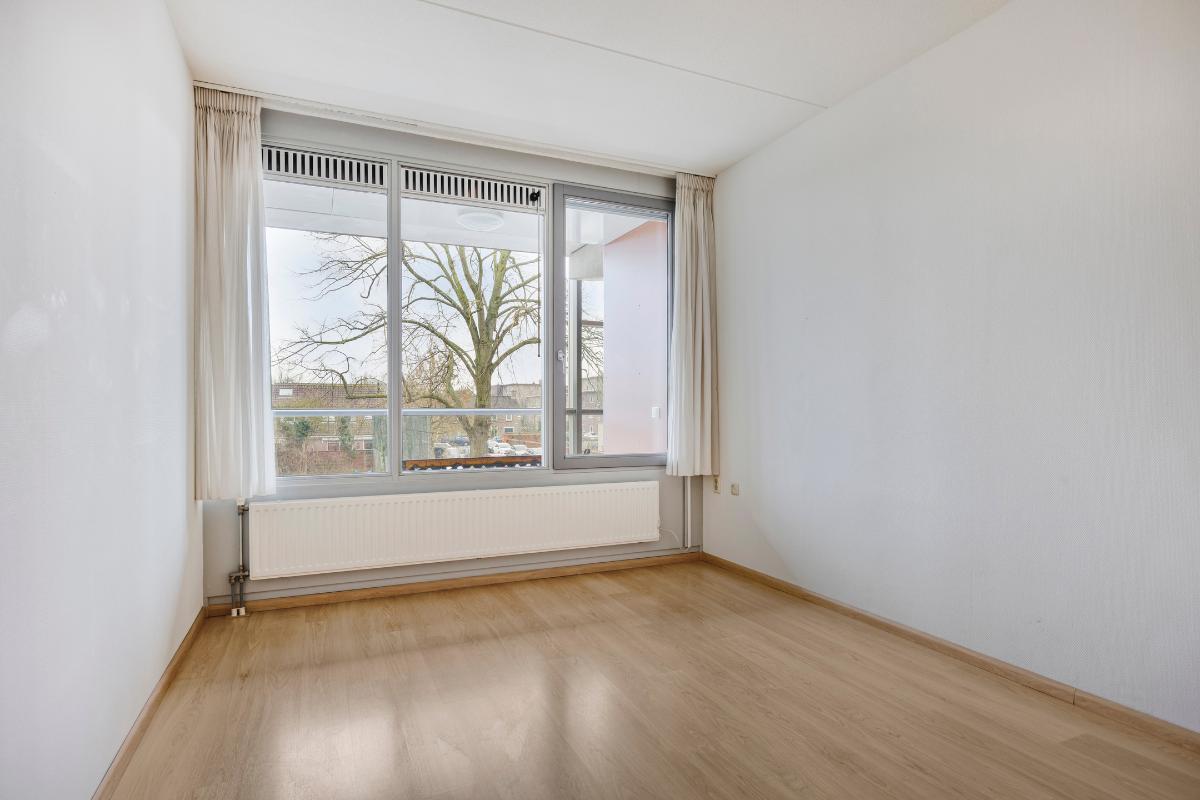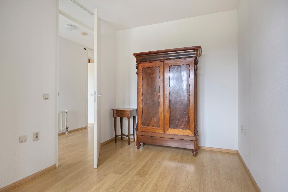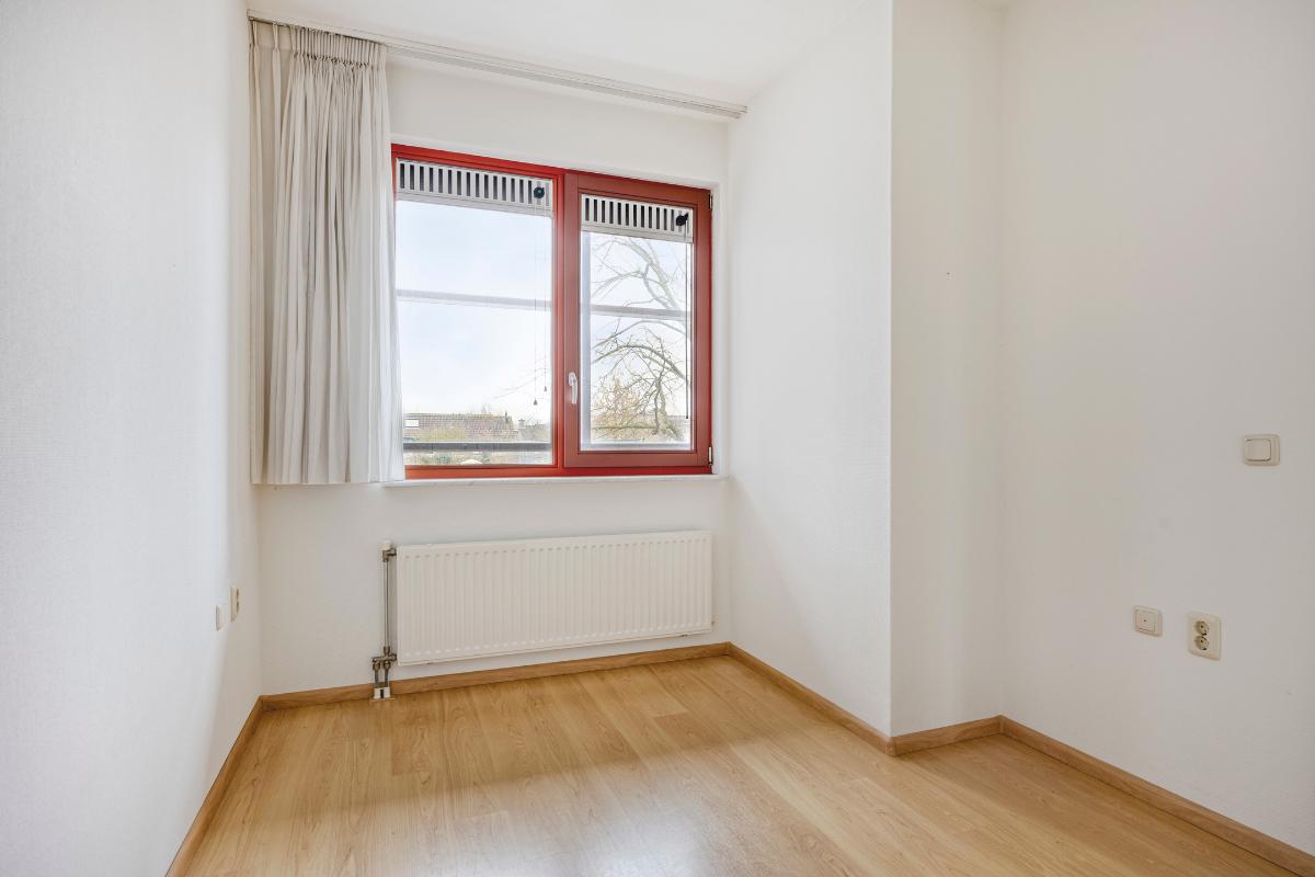 Slaapkamer 2: Deze slaapkamer is eveneens gelegen aan de voorzijde en ideaal in gebruik als slaapkamer, kantoor aan huis of een hobbyruimte.