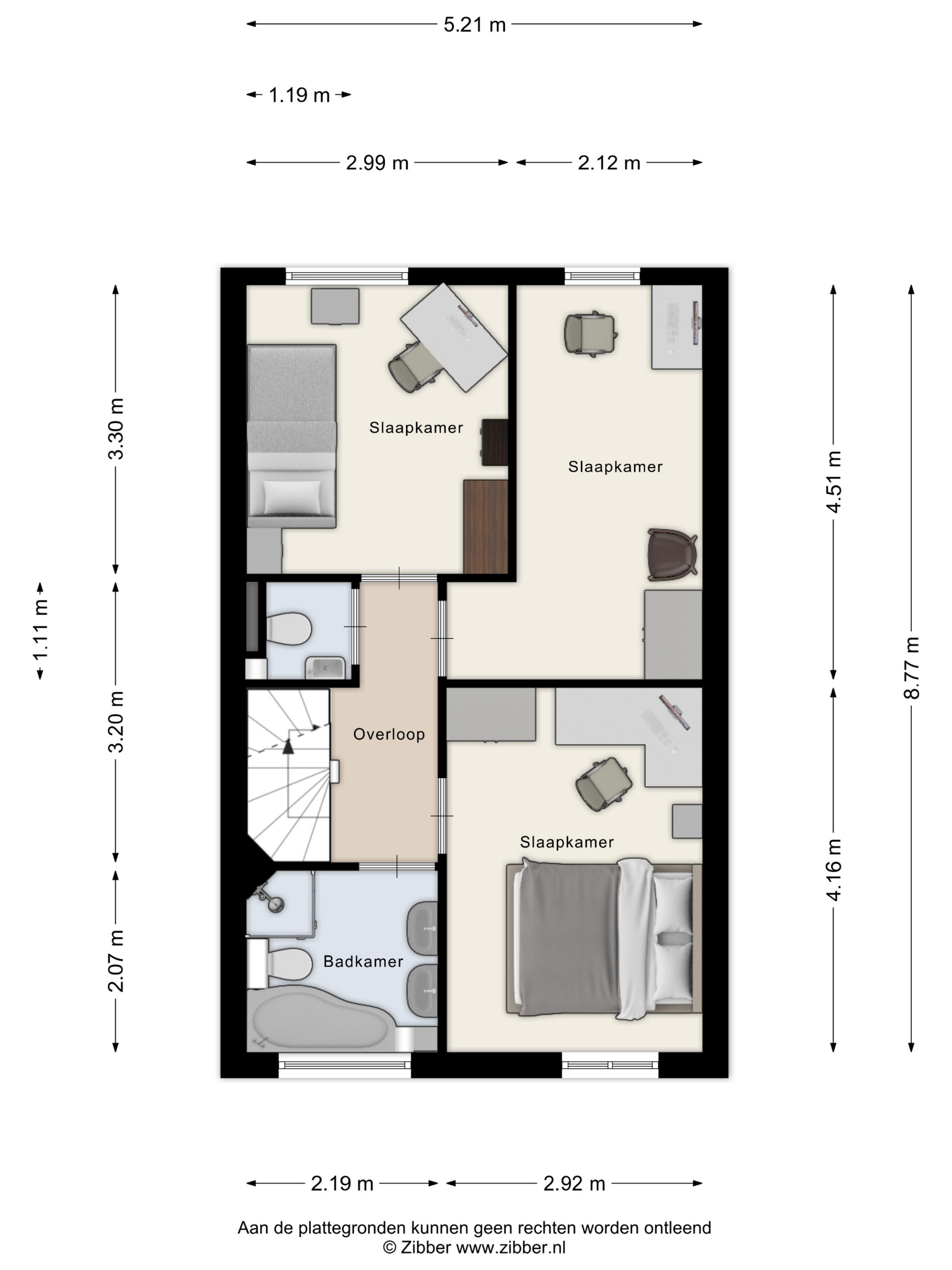 Overloop: De overloop biedt toegang tot de 3 slaapkamers, de badkamer, een toilet en een vaste trap naar de 2e verdieping.