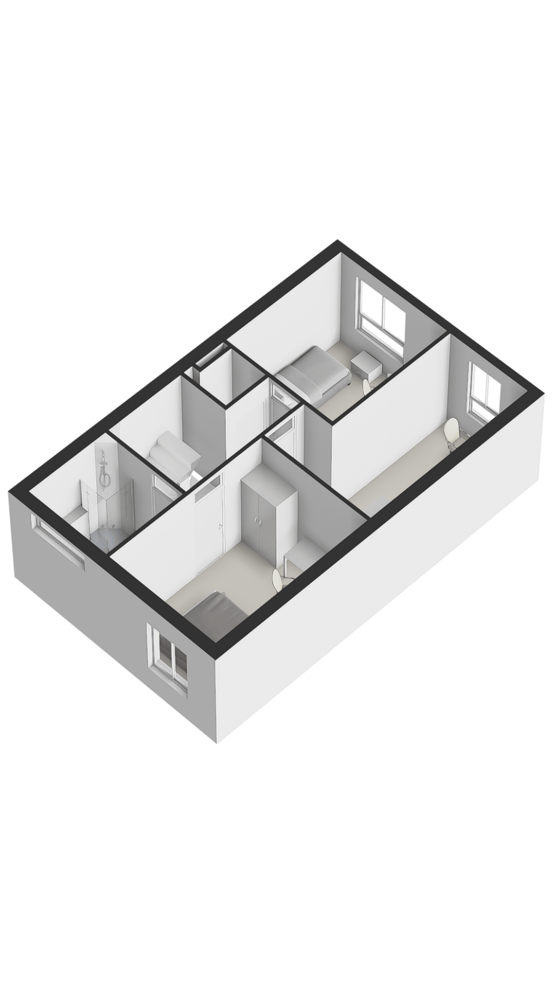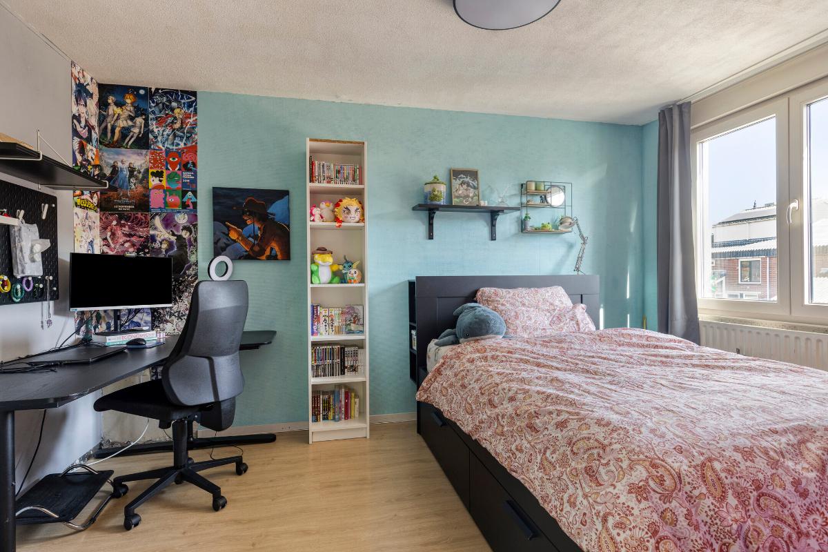 Slaapkamer 2: Deze slaapkamer aan de achterzijde wordt momenteel gebruikt als logeerkamer en is eveneens voorzien van een draaikiepraam met hand bedienbaar rolluik.