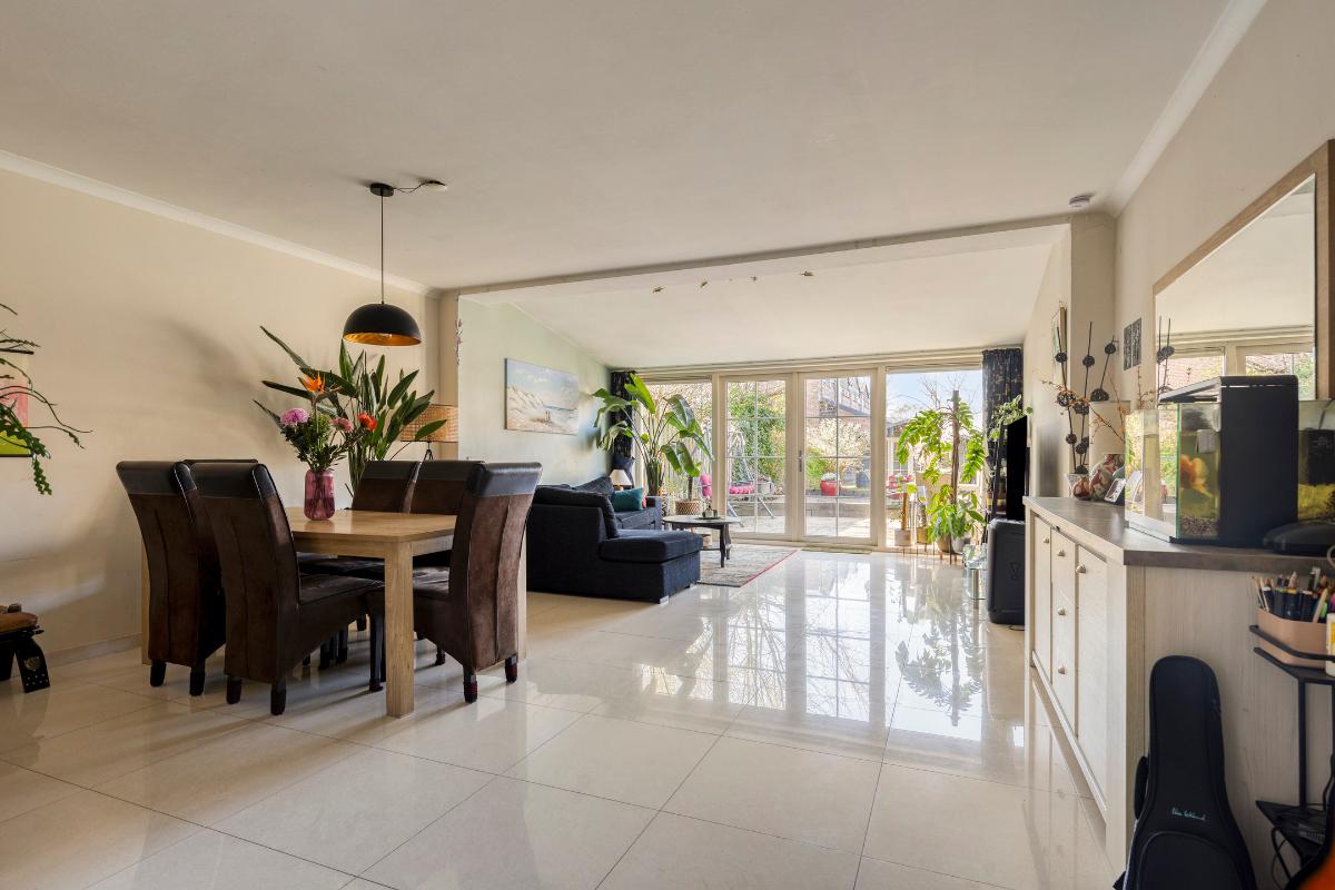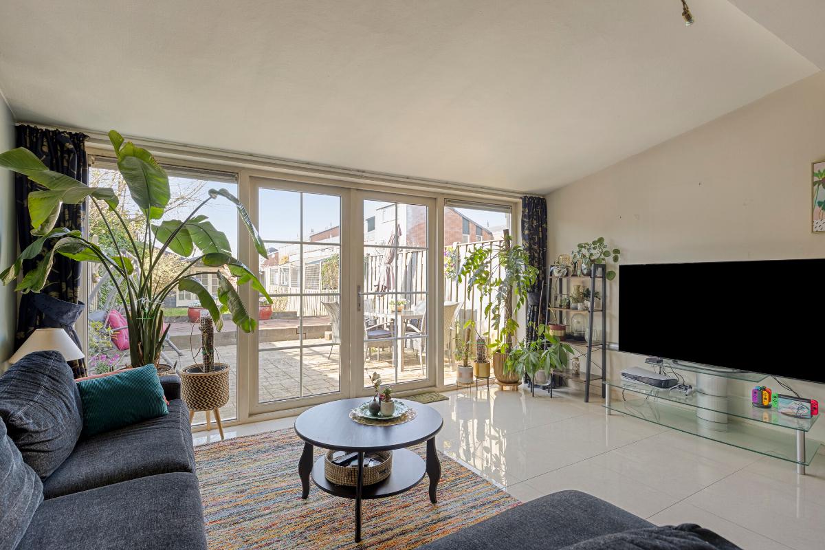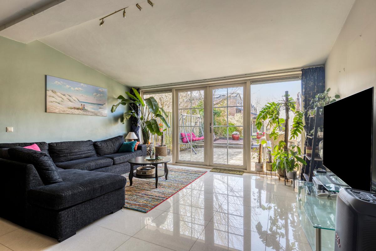 Woonkamer: De uitgebouwde woonkamer is licht en ruim van opzet en beschikt over openslaande deuren die direct toegang geven tot de achtertuin. Verder is er een trapkast met bergplanken, en de woonkamer biedt tevens toegang tot de gang.