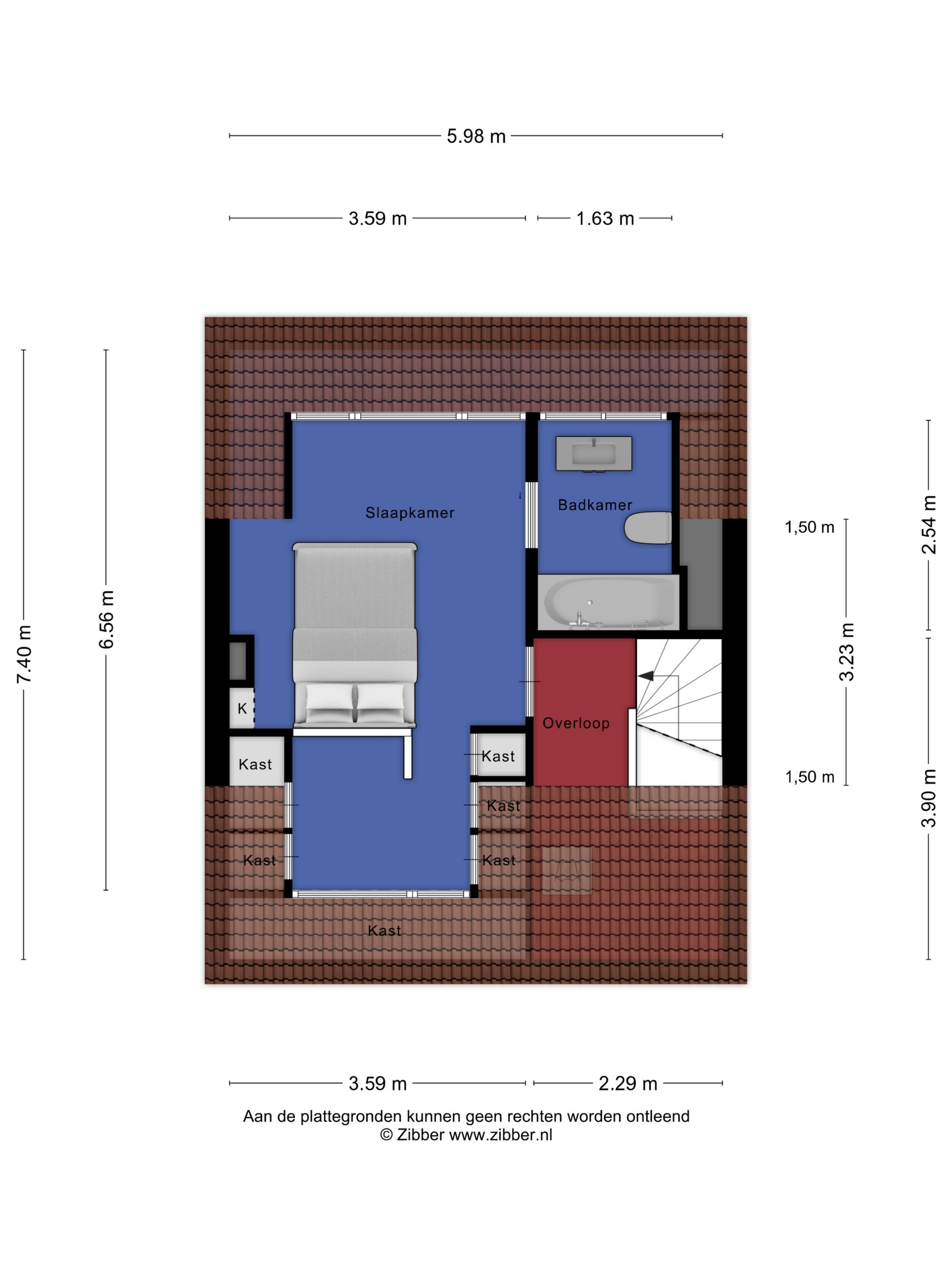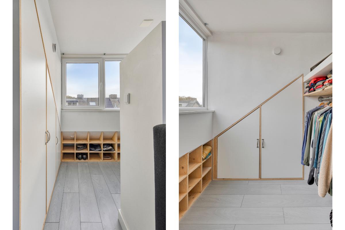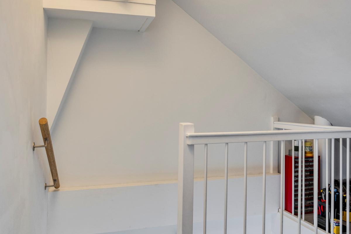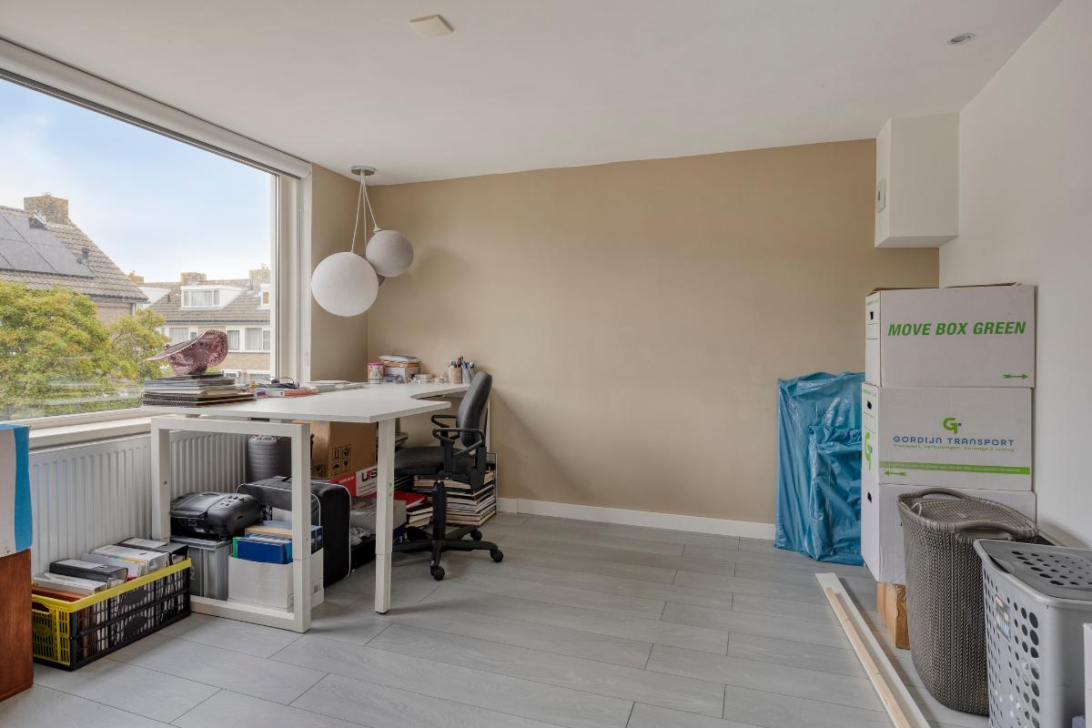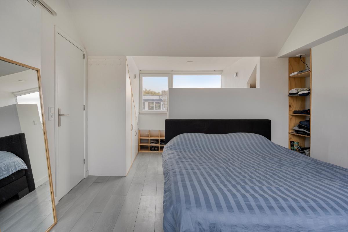 Tweede verdieping: De zolderverdieping is optimaal benut door de twee dakkapellen. Ook hier ligt een laminaatvloer en zijn de kozijnen van kunststof met een draai-/kiepsysteem. Op de overloop met bergruimte is de opstelplaats van de CV-ketel en zijn er de aansluitingen voor de wasmachine en droger. Tevens bevindt zich op deze verdieping een slaapkamer met een inloopkast en de tweede badkamer welke voorzien is van ligbad, wastafel en toilet.
