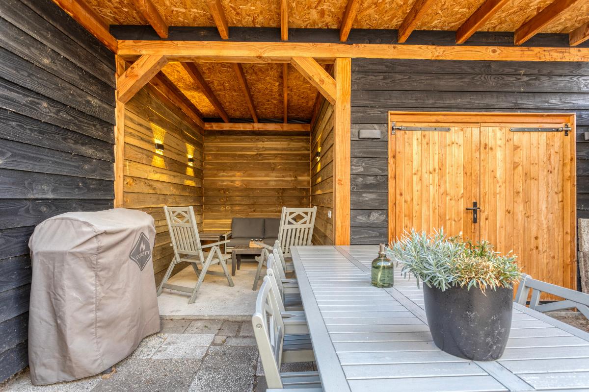 Buitenruimte De voor- en achtertuin zijn verzorgd aangelegd met bestrating. De zonnige achtertuin op het zuidwesten beschikt over een geïsoleerde houten schuur en een overkapping (2023), een heerlijke plek om tot in de avonduren buiten te zitten. Via de schuur is het achterpad bereikbaar.