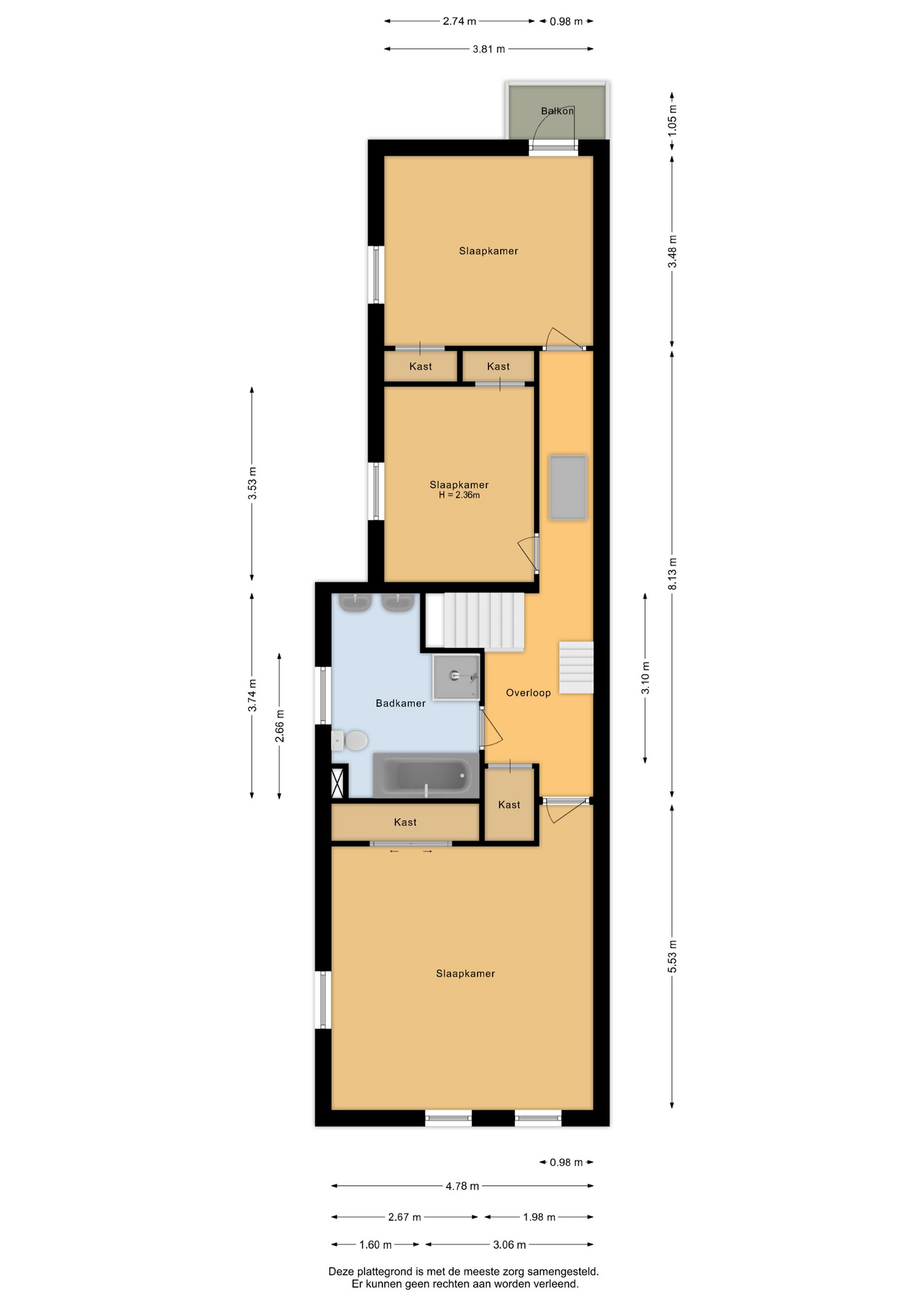 Eerste verdieping: Overloop met toegang tot drie slaapkamers, waarvan één met vaste kast en één met balkon